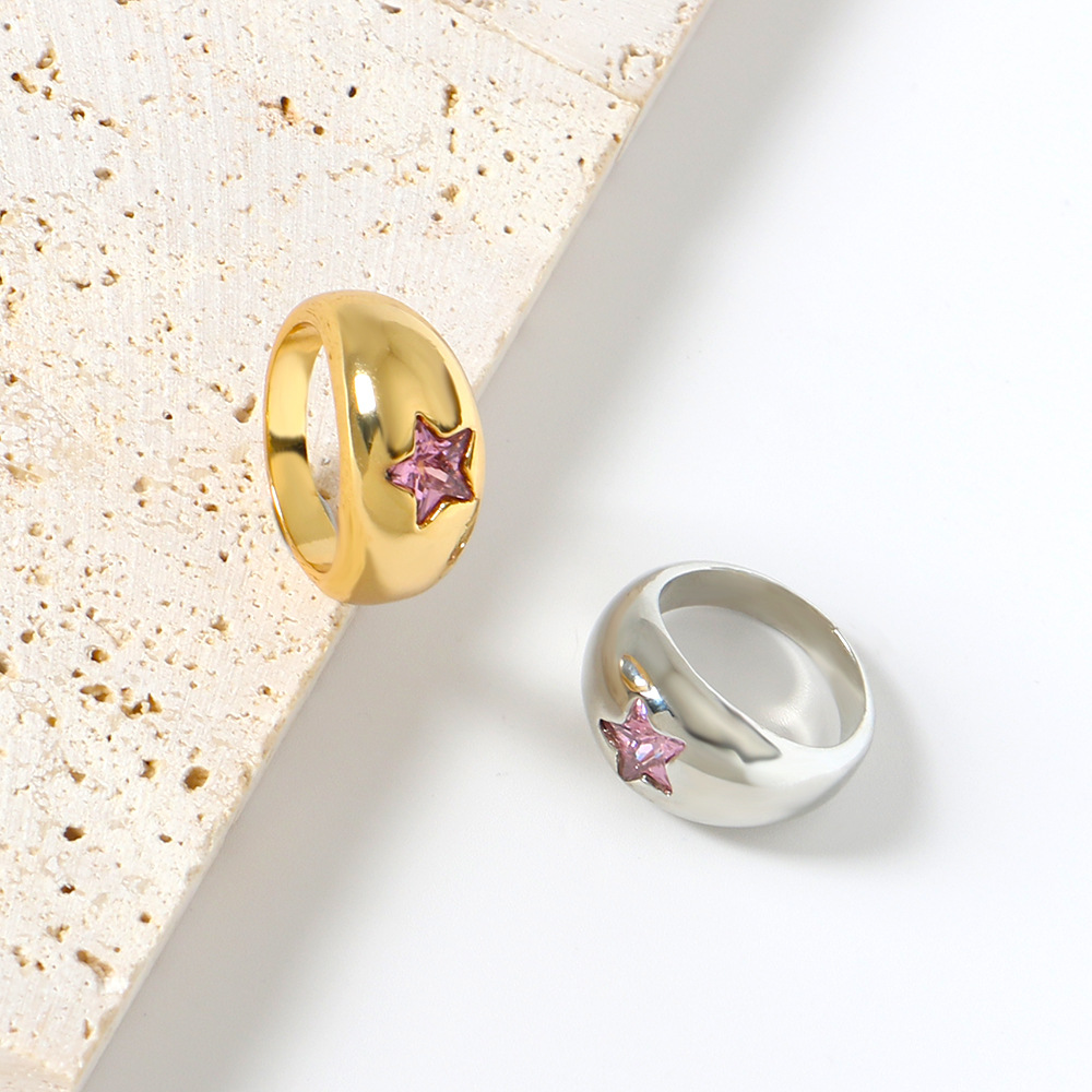 Product information:Type: Ring Treatment Process: Electroplating Color: F4-5 Gold Pink Five Star ring, F4-6 White Gold Pink Five Star ring Material: Metal Shape: Geometry