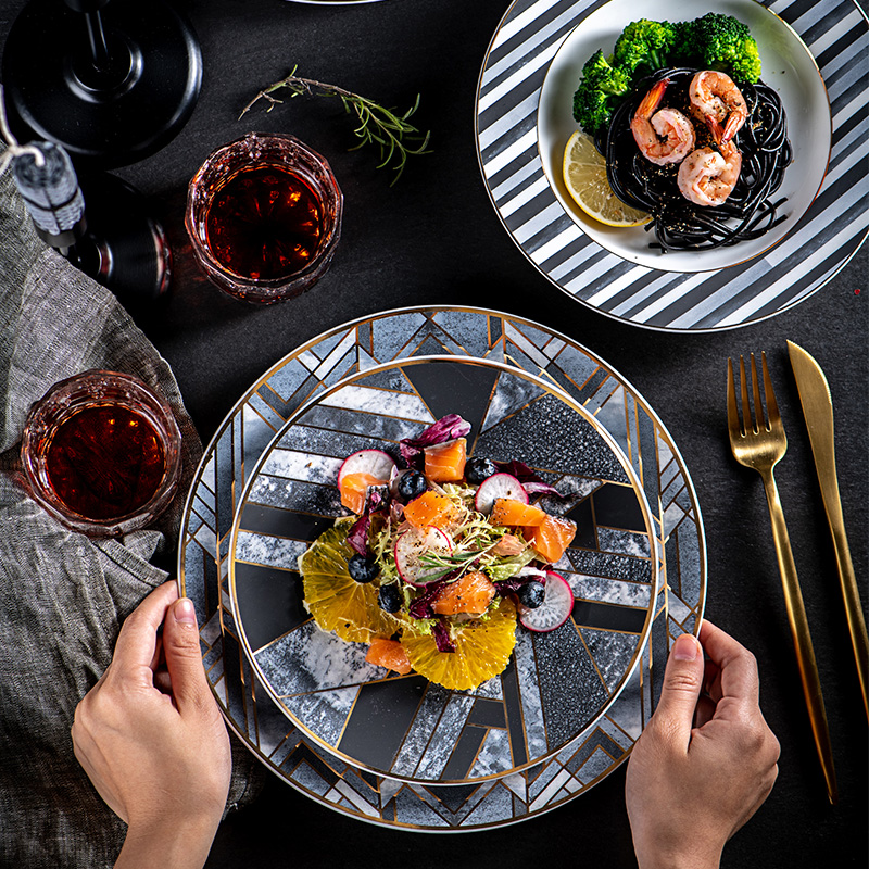 Material: more than 45% bone meal and bone chinaPattern: Gold trimStyle: Nordic styleShape: round