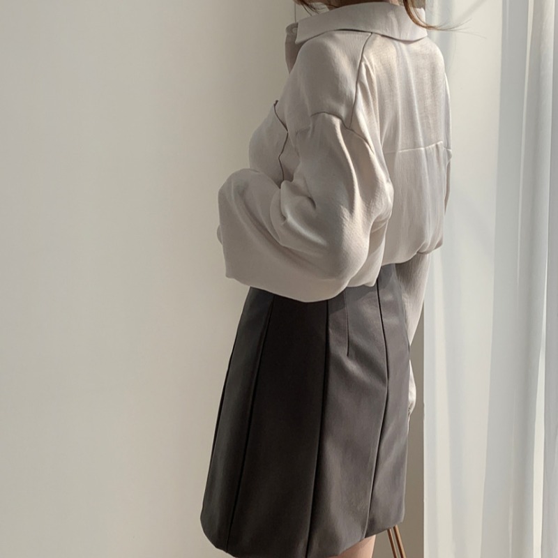 Color classification: blue shirt, gray apricot shirt, brown skirt, Black skirt