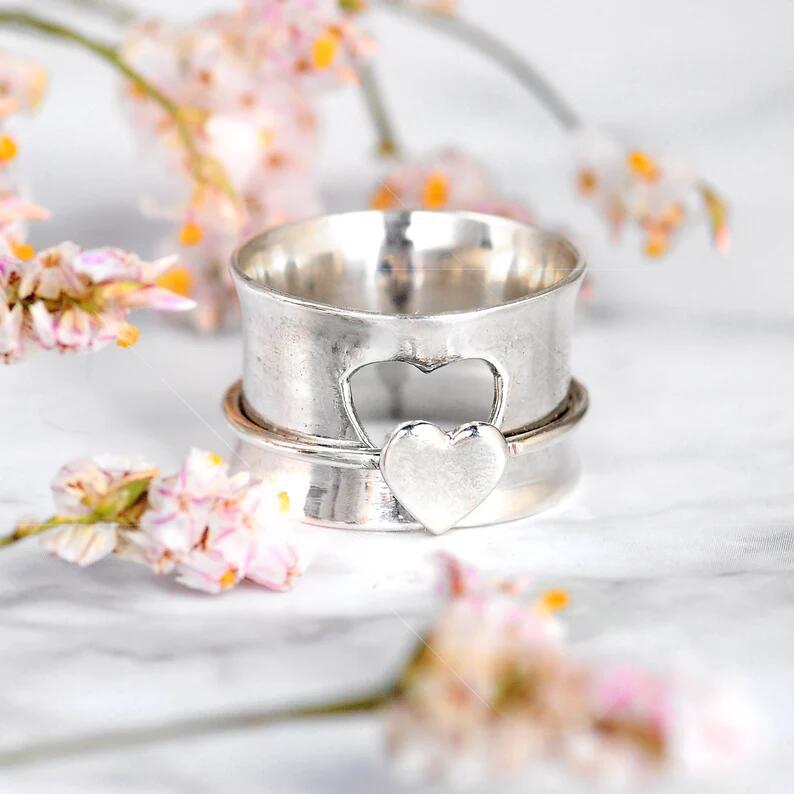 Type : RingMaterial: metalStyle: Europe and AmericaShape: heart shapeTreatment process: electroplatingStyle : Women'sColor : Spinning HeartSize: 6, 7, 8, 9, 10