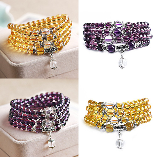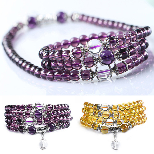 2021 Nueva 6mm Piedra de Cristal de Amatista 108 Granos de Rezo Budista Mala Pulsera Collar C6TY