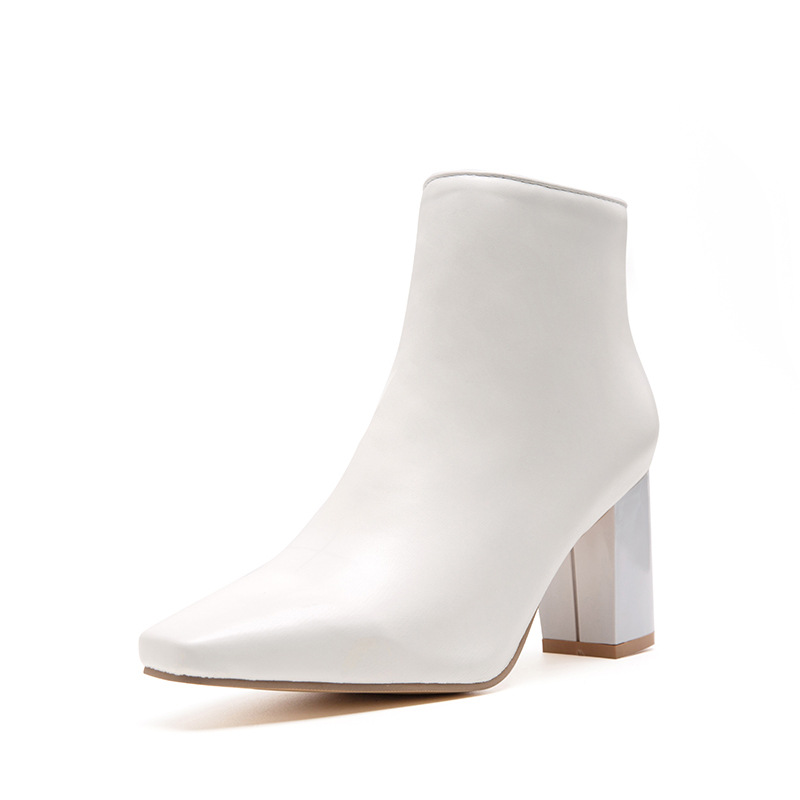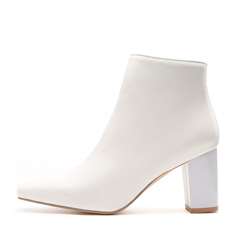 Upper material: puLining material: mouth PU + lining (the lining is very thin velvet)Heel height: 7.5 cmHeel type: thick heelColor type: black whiteSize: 34-47Sole: non-slip bottom