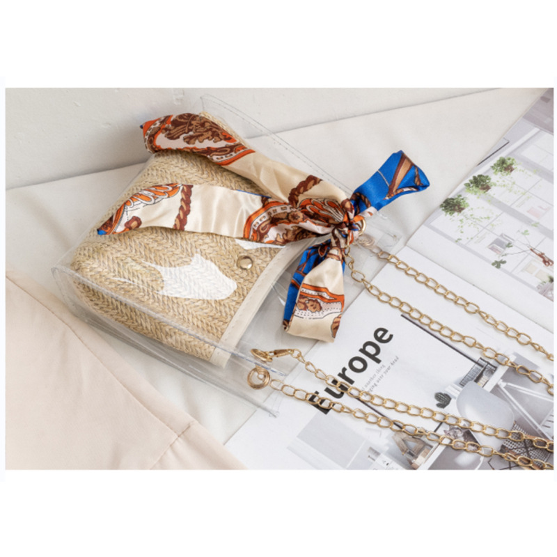 Specification:Specifications: 18x7x18c mColor: Milk white, brown, black, pinkLining: BraidedChain: 120c mMaterial: Transparent pvcCapacity: Wallet mobile cosmeticsPacking list: