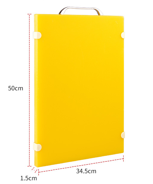 Name: Non-slip PE cutting boardMaterial: PE (low density polyethylene resin)Specifications: 33*23*1.8cm yellow, 36*26*1.8cm yellow, 40*30*1.8cm yellow, 38*28*2cm yellow, 38*28*2cm white, 50*34.5*1.5cm yellow, 50* 34.5*1.5cm white