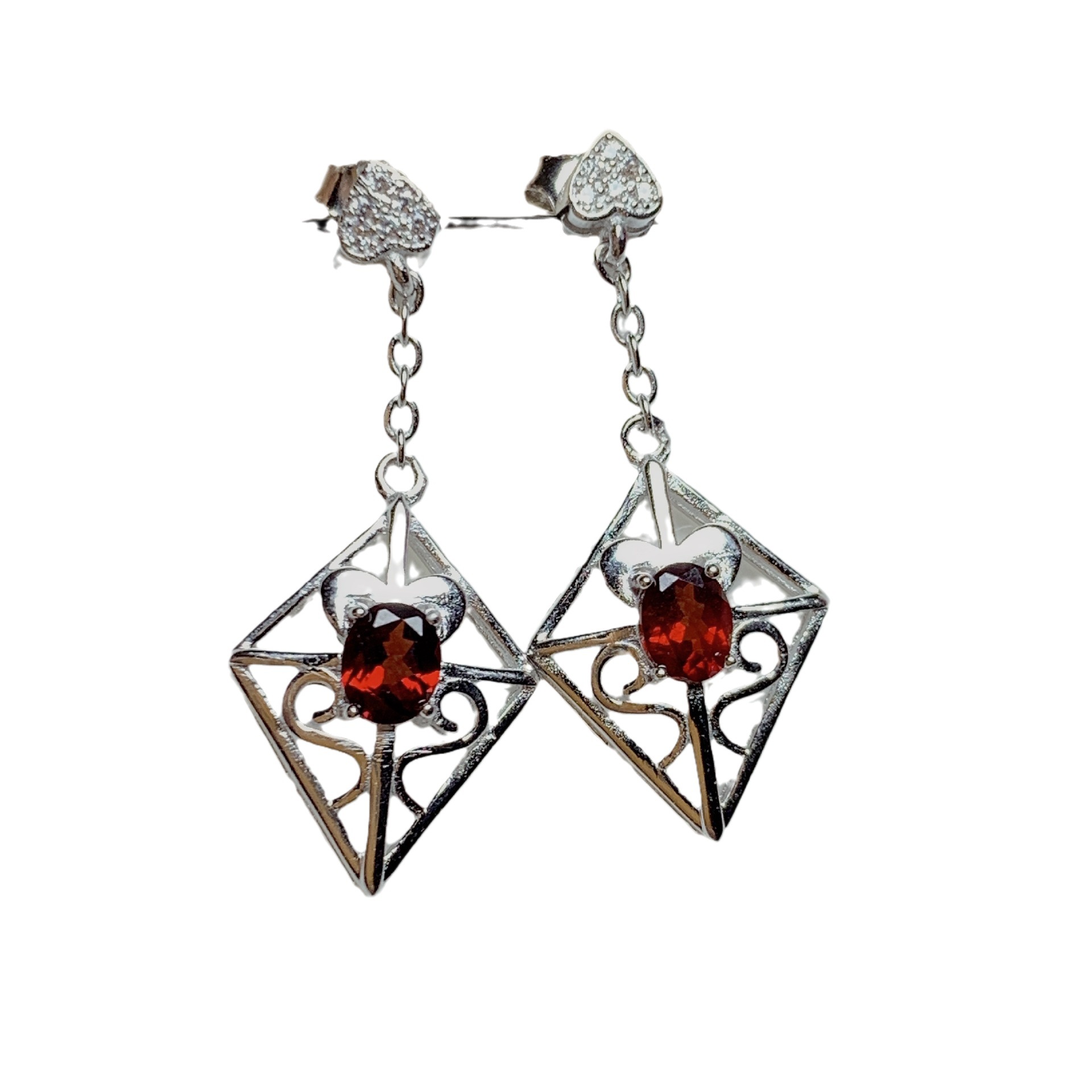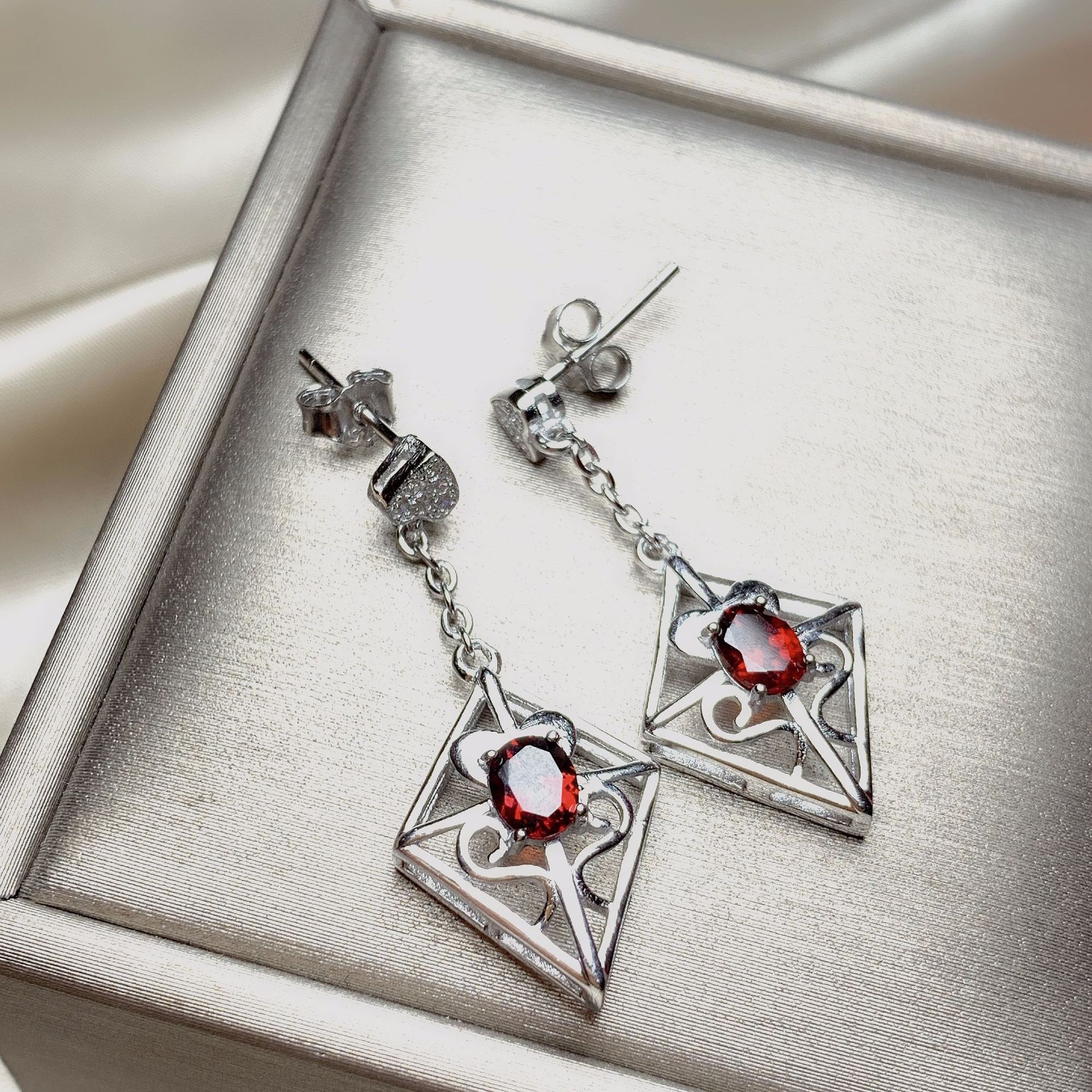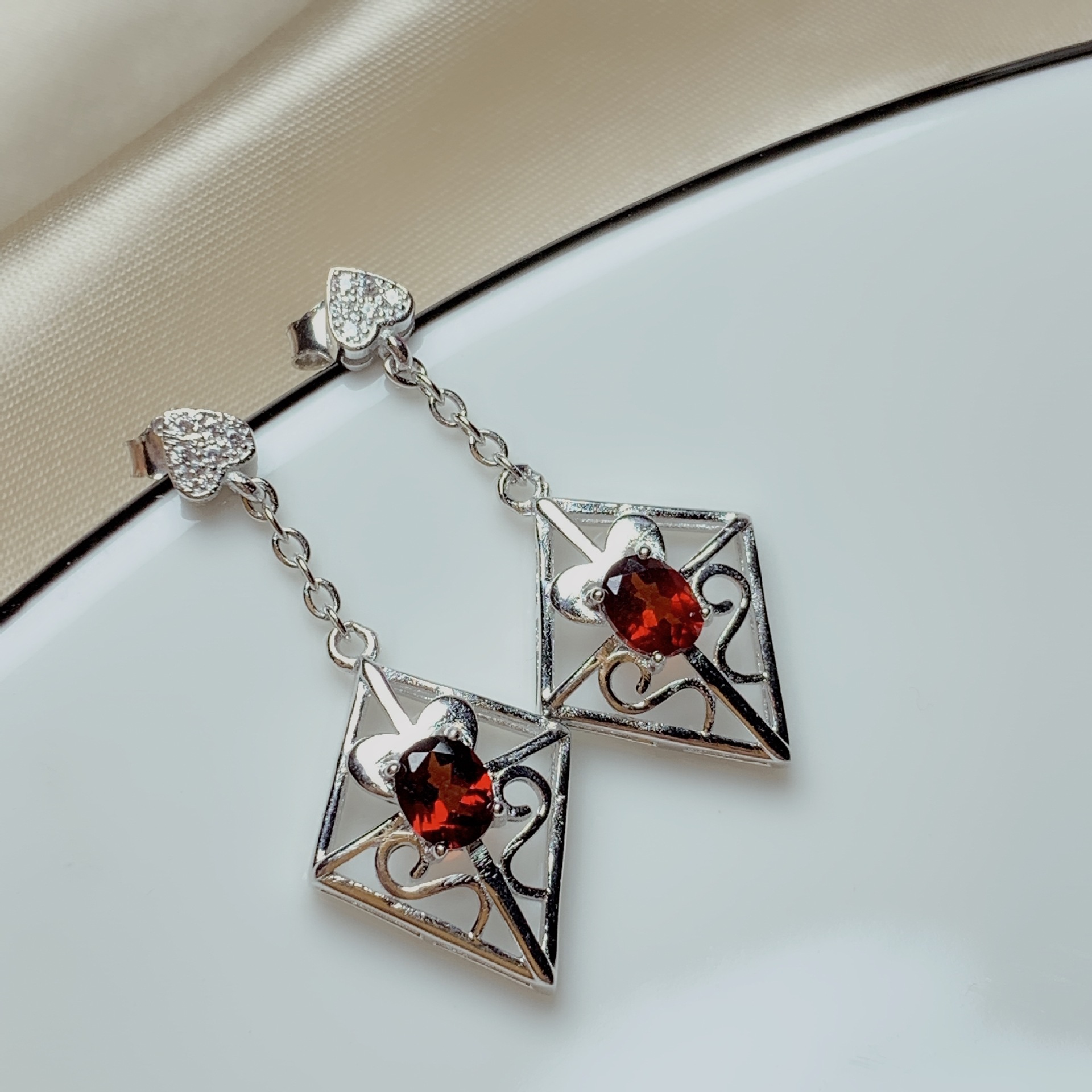 925 Silver Inlaid Natural Garnet Stud Earrings Style