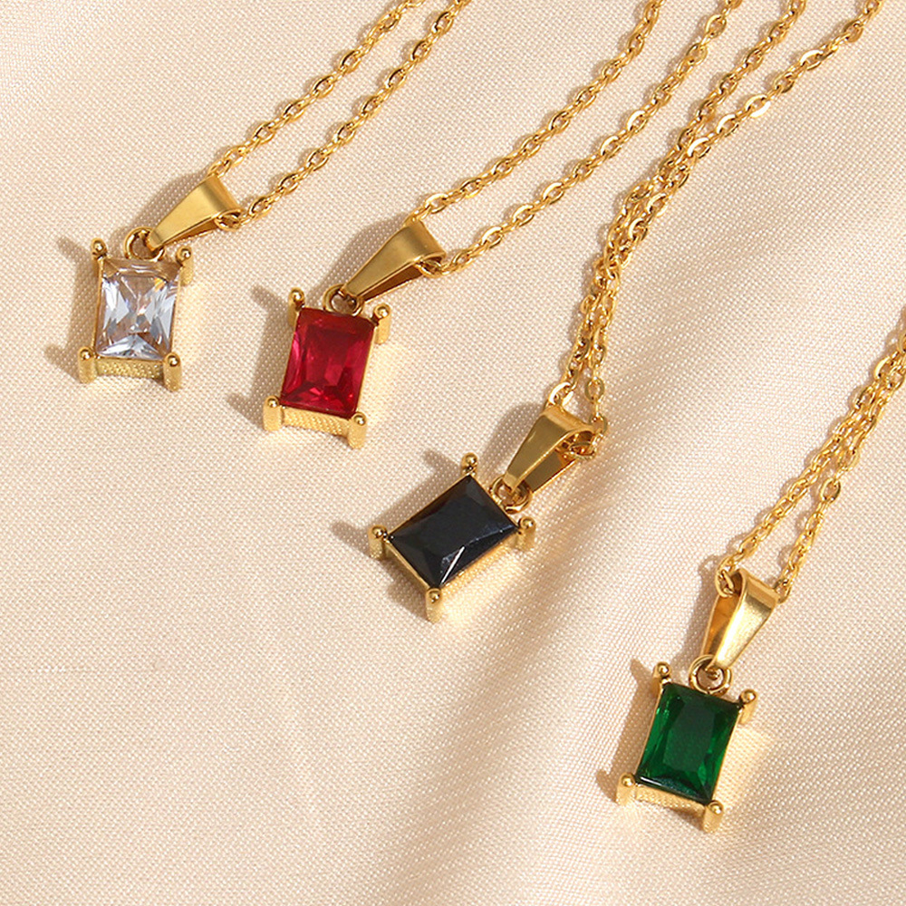 Product information:Color: black, green, red, whiteApplicable people: womenChain style: Regular chainMaterial: Stainless steelShape: GeometricPopular elements: quadrilateralStyle: SimpleSize: 40cm 0.9*0.7*0.4