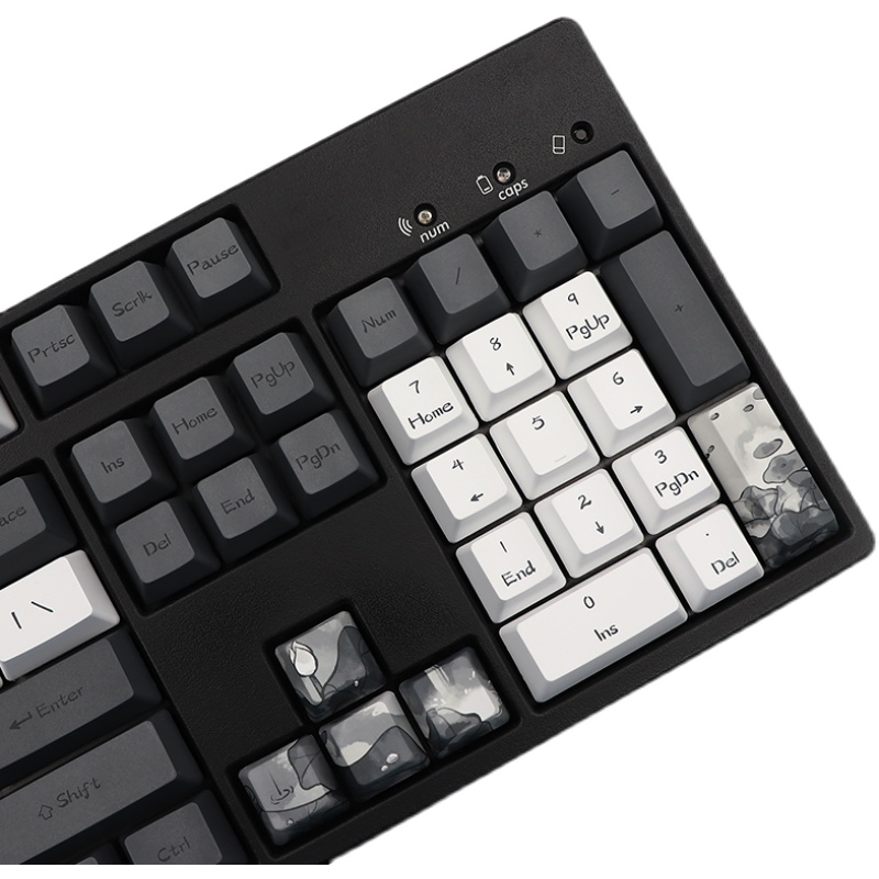 Material:PBTStyle: Stylish and minimalistFeatures:Heat sublimationColour:dark grey, light grey