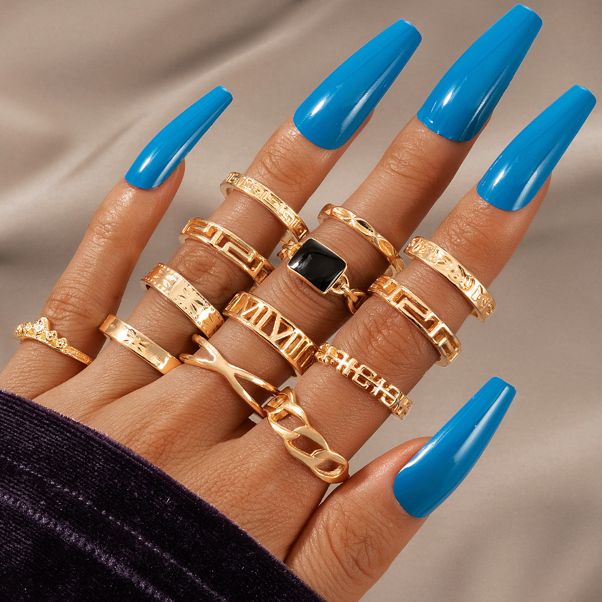 Alloy Geometric Element Set Ring 13-piece Letter Star Ring Set