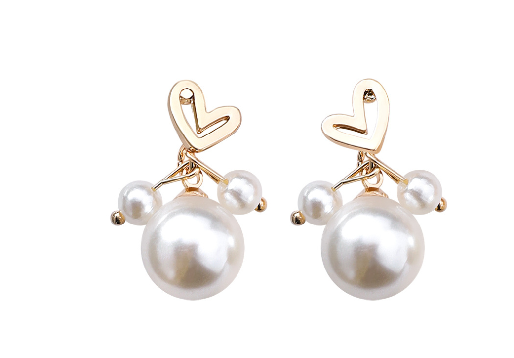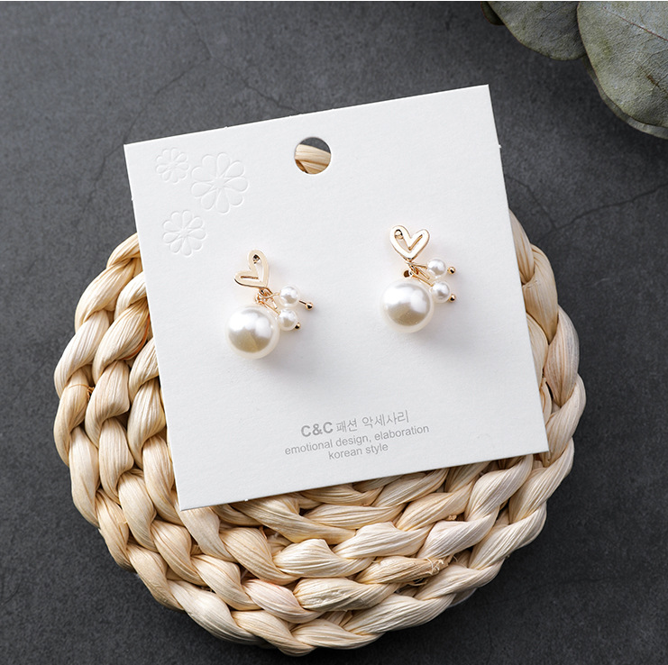 Sweet girl small love pearl earrings hollow short earrings Korean fashion personality literary earrings