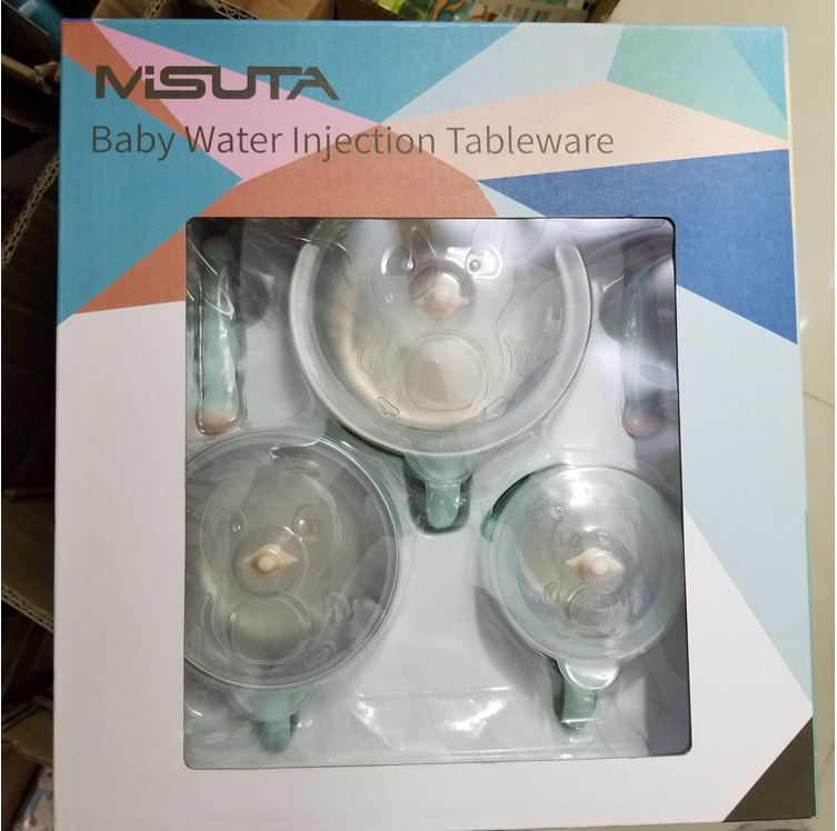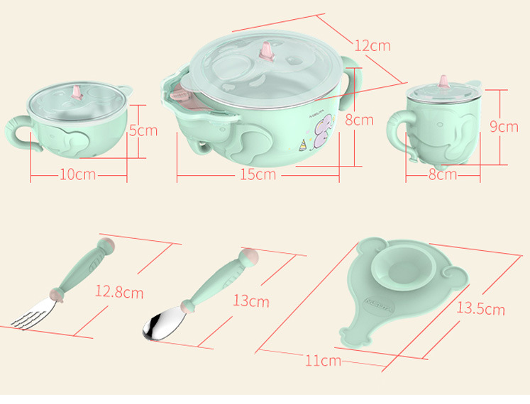 Children's stainless steel cutlery set baby sucker anti-fall bowl complementary food bowl spoon baby water injection insulation bowl