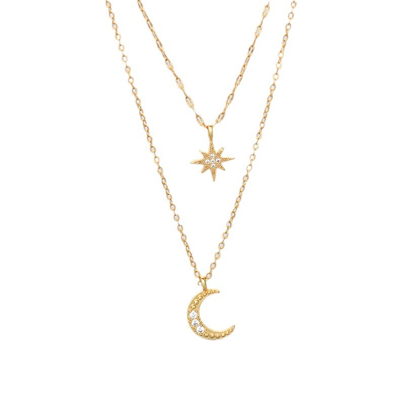 Color: double layer rhinestone asterism moon necklace/yellow gold, double layer rhinestone asterism moon necklace/white gold color