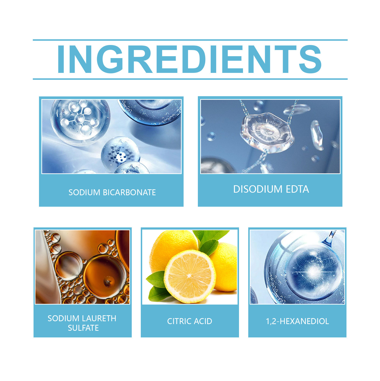 Product Ingredients: Sodium Bicarbonate, Sodium Dodecylbenzenesulfonate, Citric Acid, 1,2-Hexanediol, Disodium EDTA