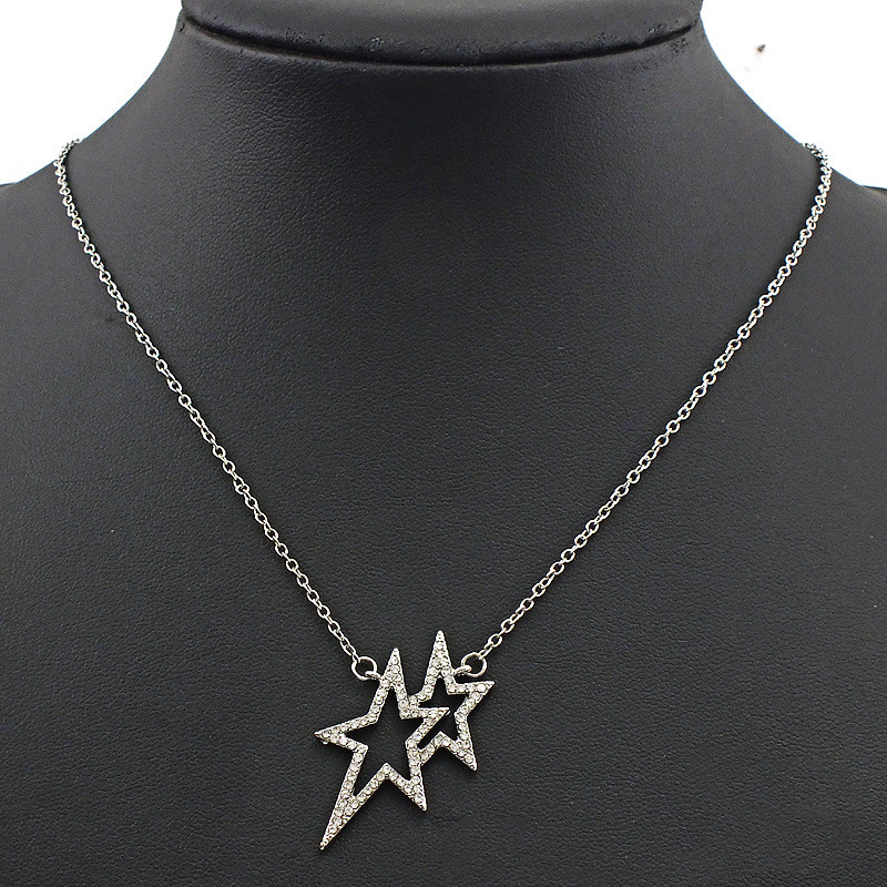 Material: AlloyProcessing technology: diamond inlayType: NecklaceShape: pentagramNecklace size: 24x31mmBaby weight: 5.71 grams