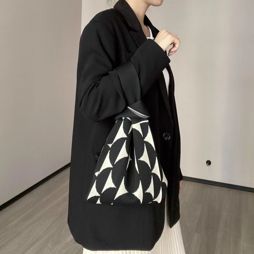 Color: knitted bag semicircle Black, knitted bag semicircle purple, knitted bag semicircle red, knitted bag semicircle Rose Red