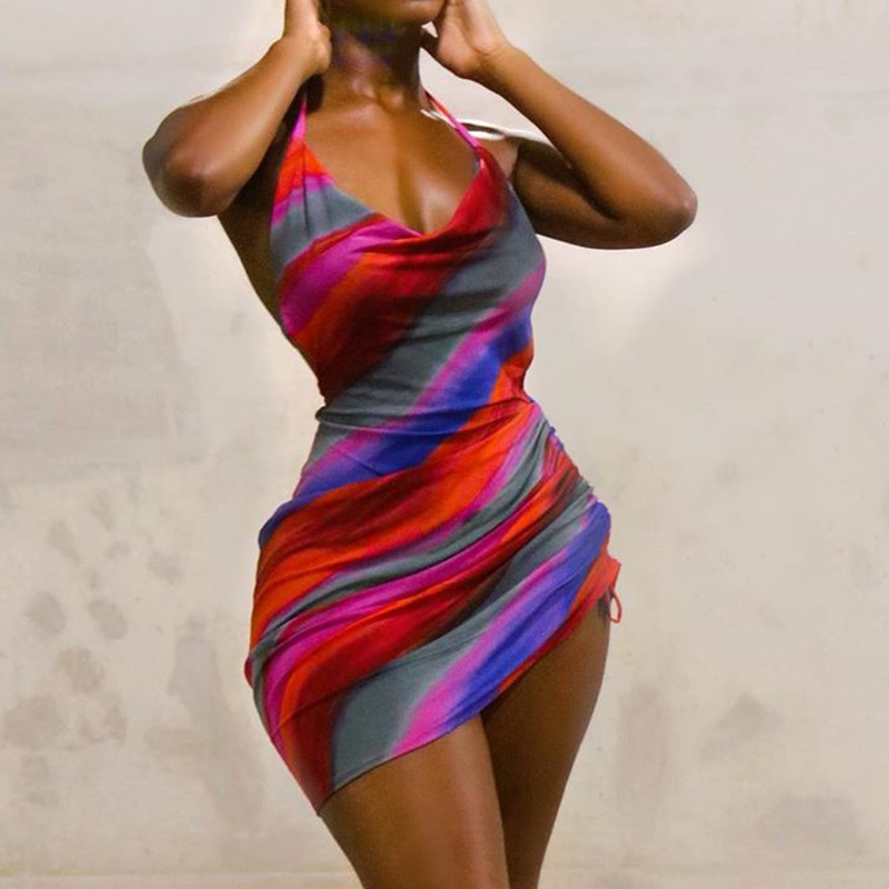 Popular elements: print, irregular, contrasting colors, backless, fluorescent, pleat