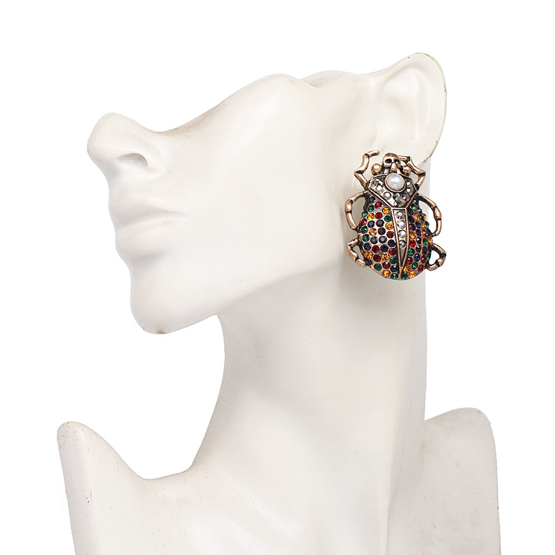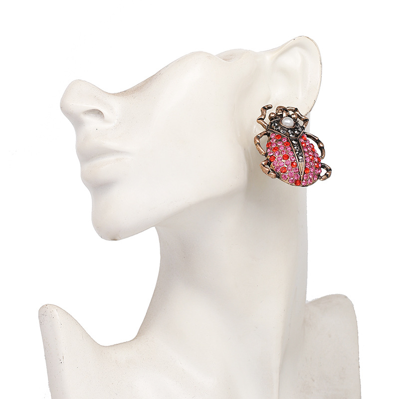 Product information:Type: ear studs Color: white, pink, colorful Style: Women's Material: Metal Shape: Beetle Popular elements: Geometry Style: European and American