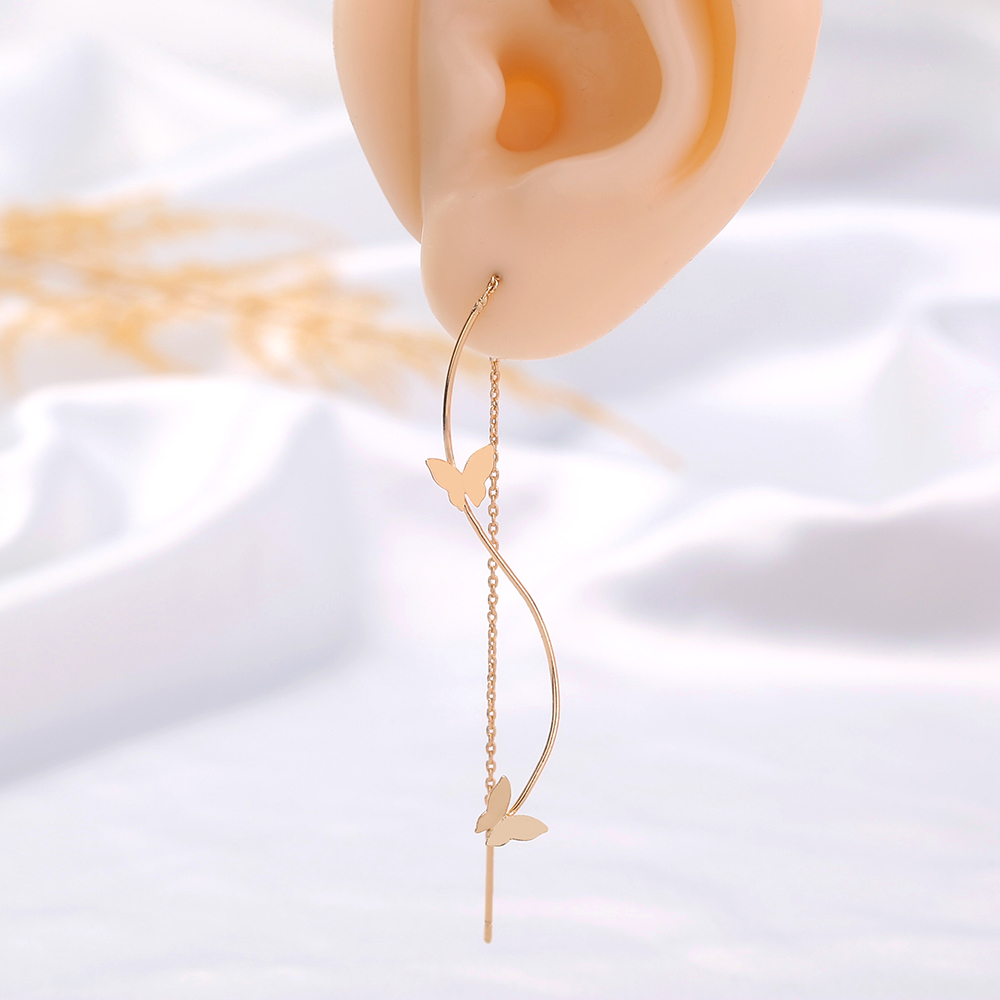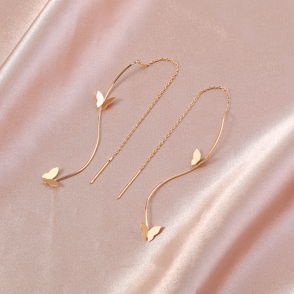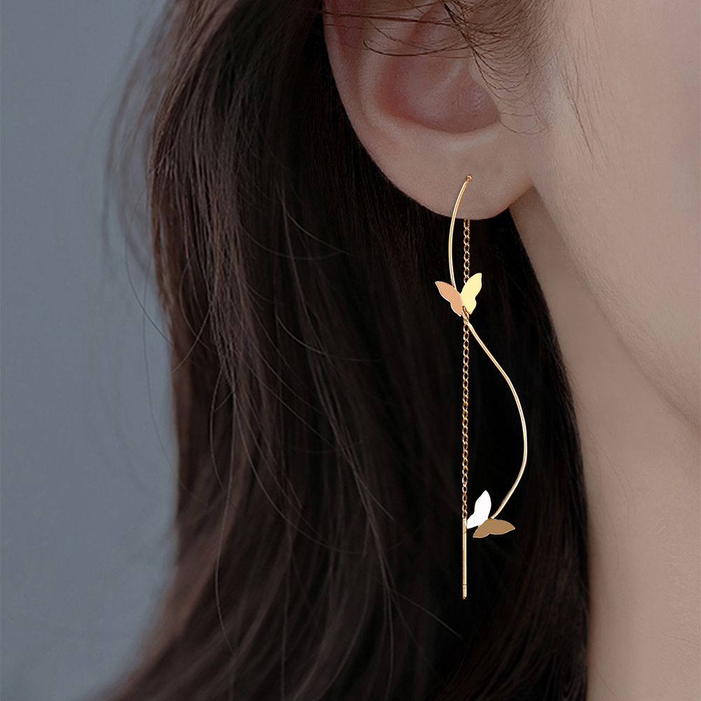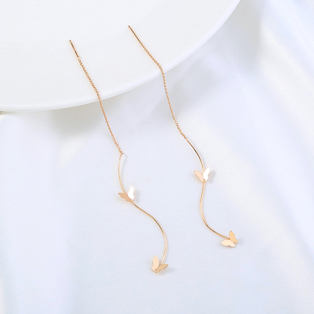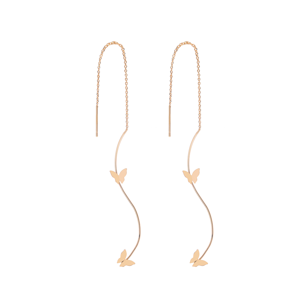 Gold Copper Squeezed Snake Butterfly Long Tassel Earrings