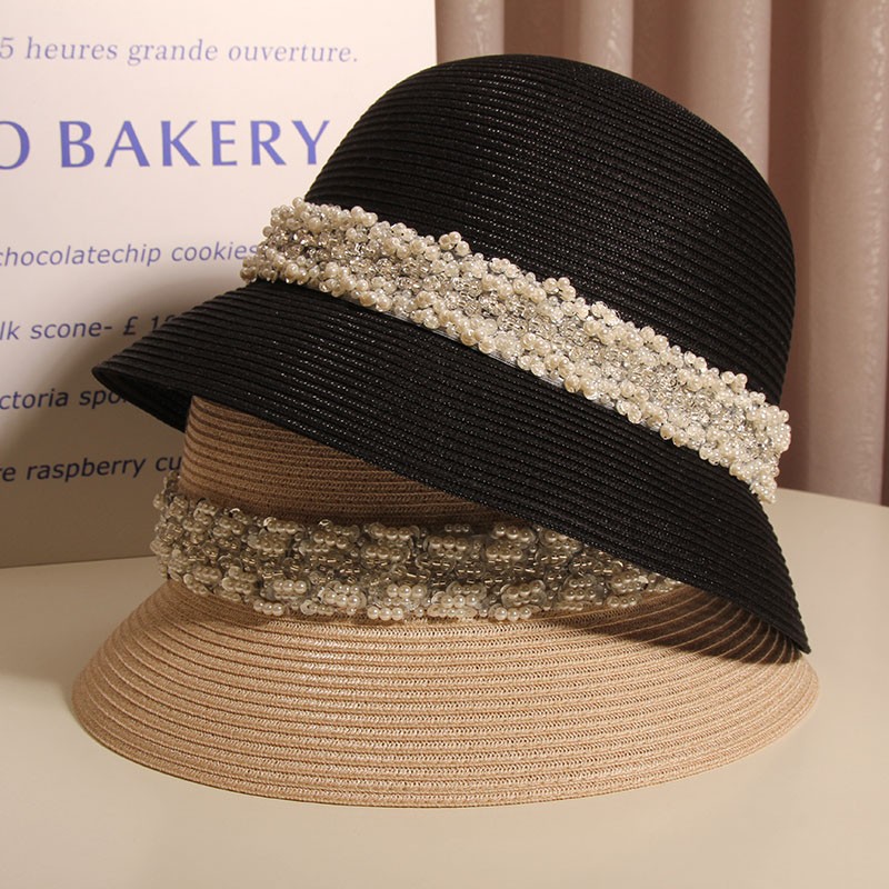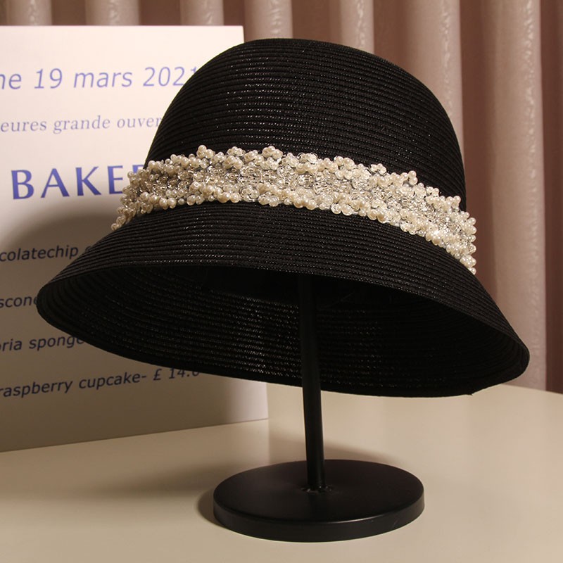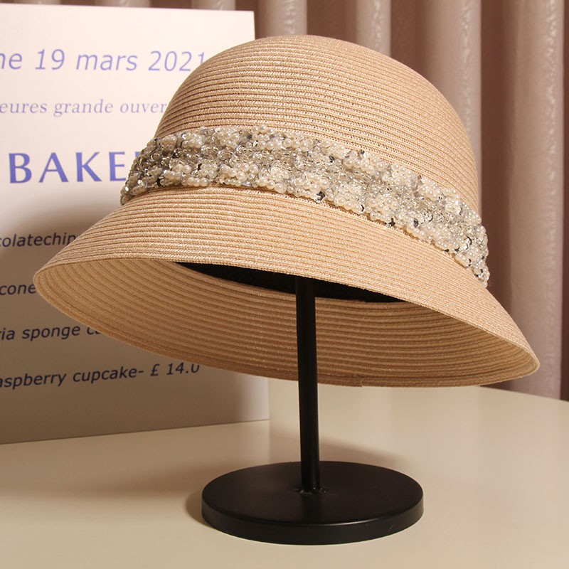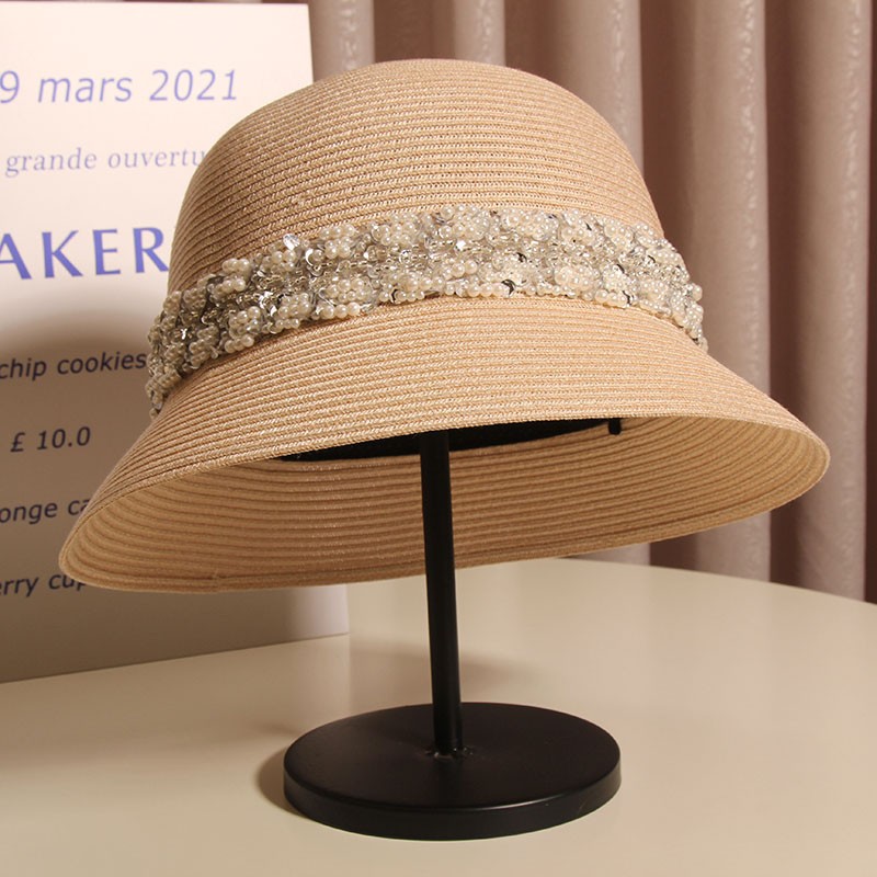 Product information:Color: heavy handmade pearl sequins pp bucket hat -- black, heavy handmade pearl sequins pp bucket hat -- apricot Suitable season: spring and autumn Crown style: Dome Main fabric composition: Sequins Size: M(56-58cm)