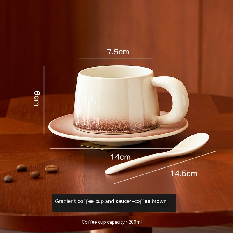 Product information:Color: charm gradient coffee set-black, charm gradient coffee set-blue, charm gradient coffee set-red, charm gradient coffee set-Brown Applicable places: office, restaurant, Cafe Capacity: 200ml Type: ceramic cup