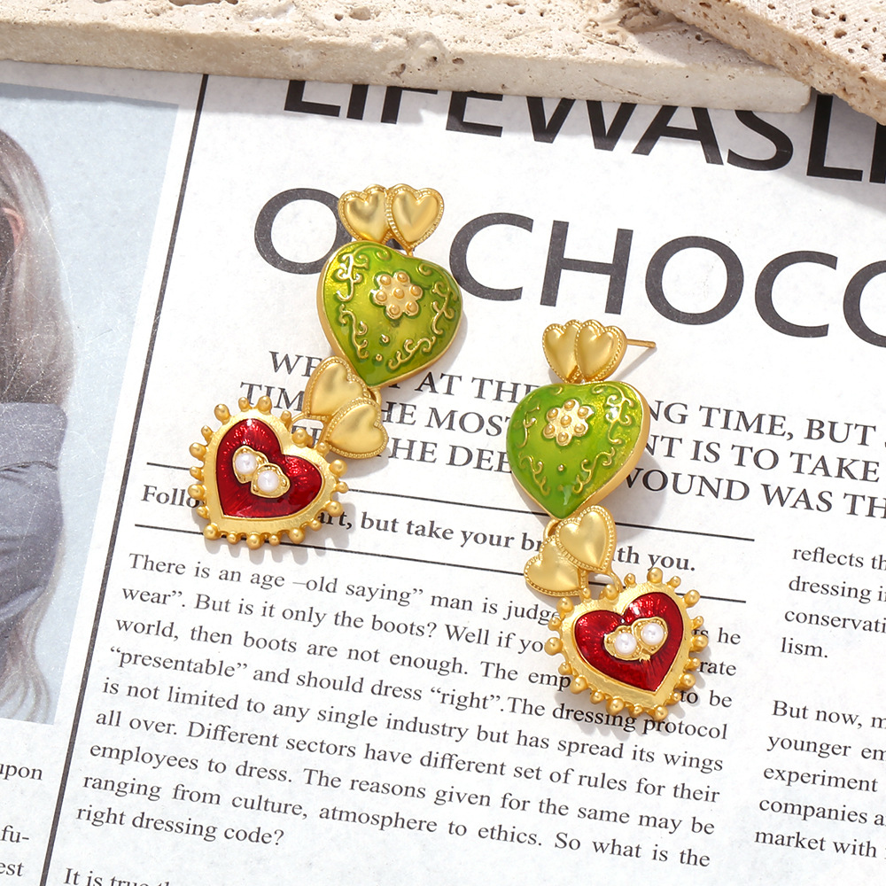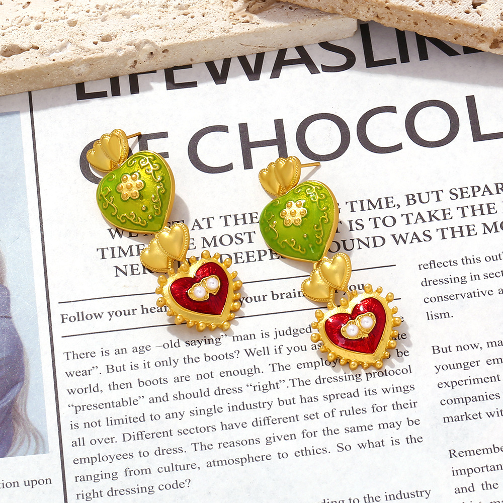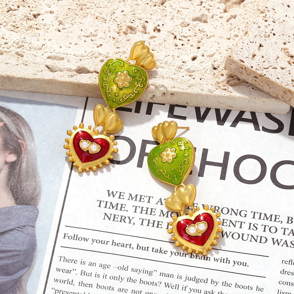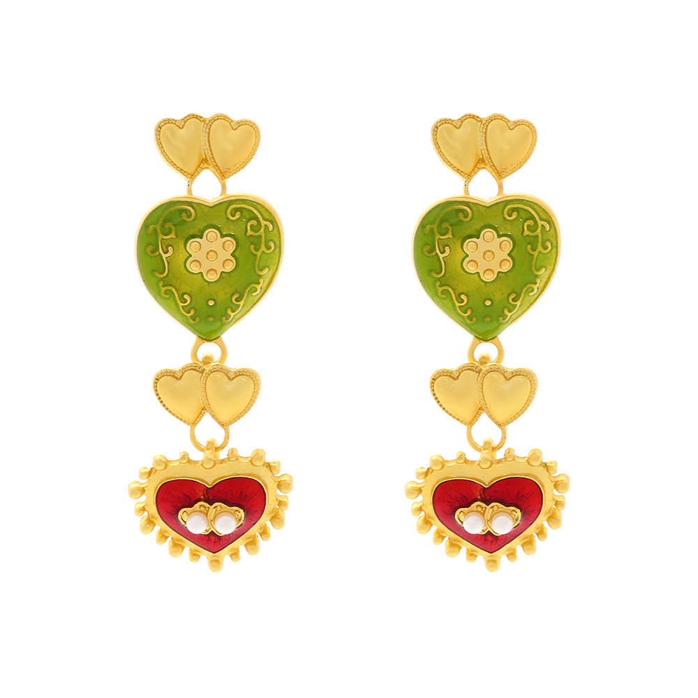 Middle Ancient Palace Style Diamond Drop Oil Heart Earrings