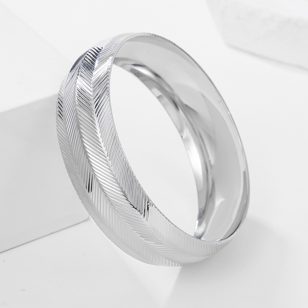 Vintage thick metal bracelet with feather texture decoration on the surface, representing wealth, status, and beautiful blessings. Suitable for women's daily holiday wear and wedding jewelry.