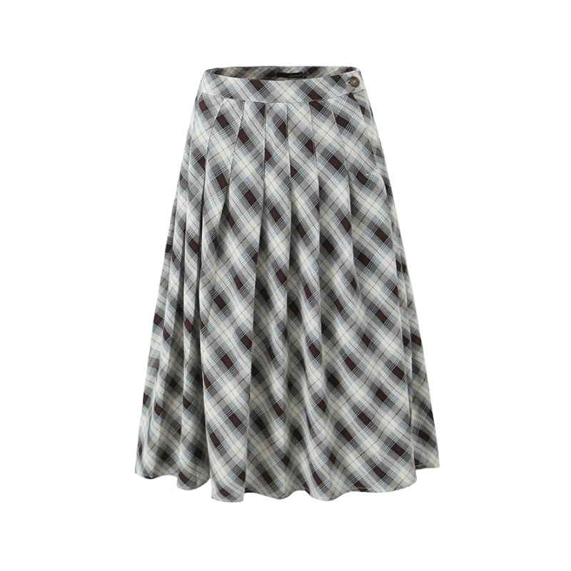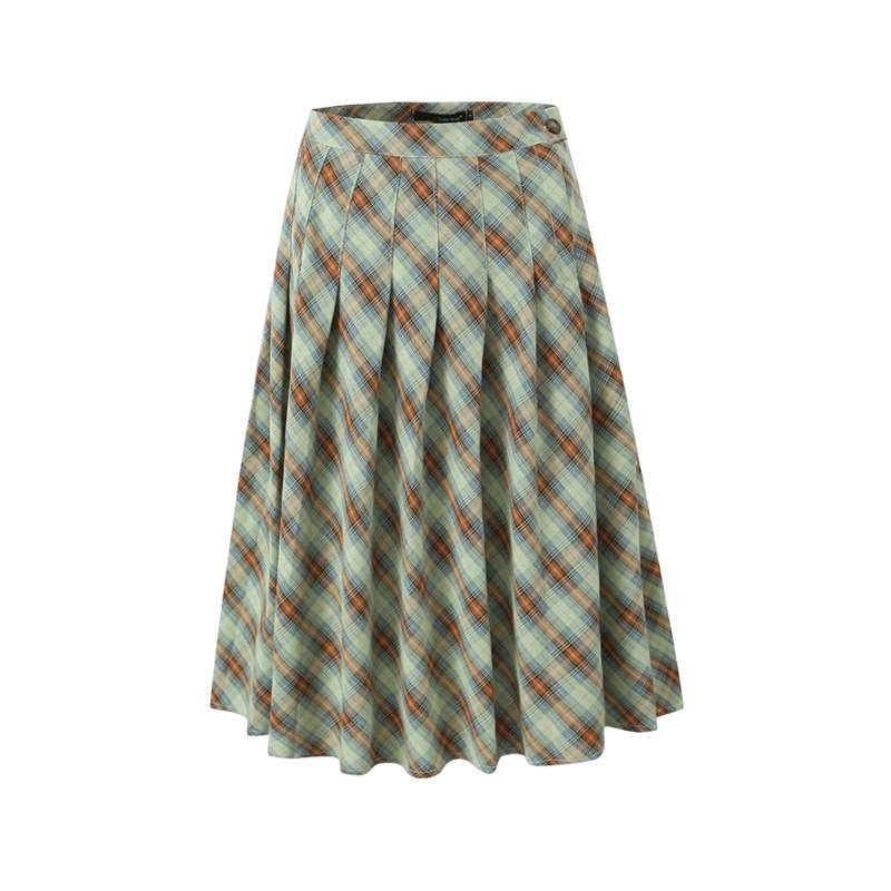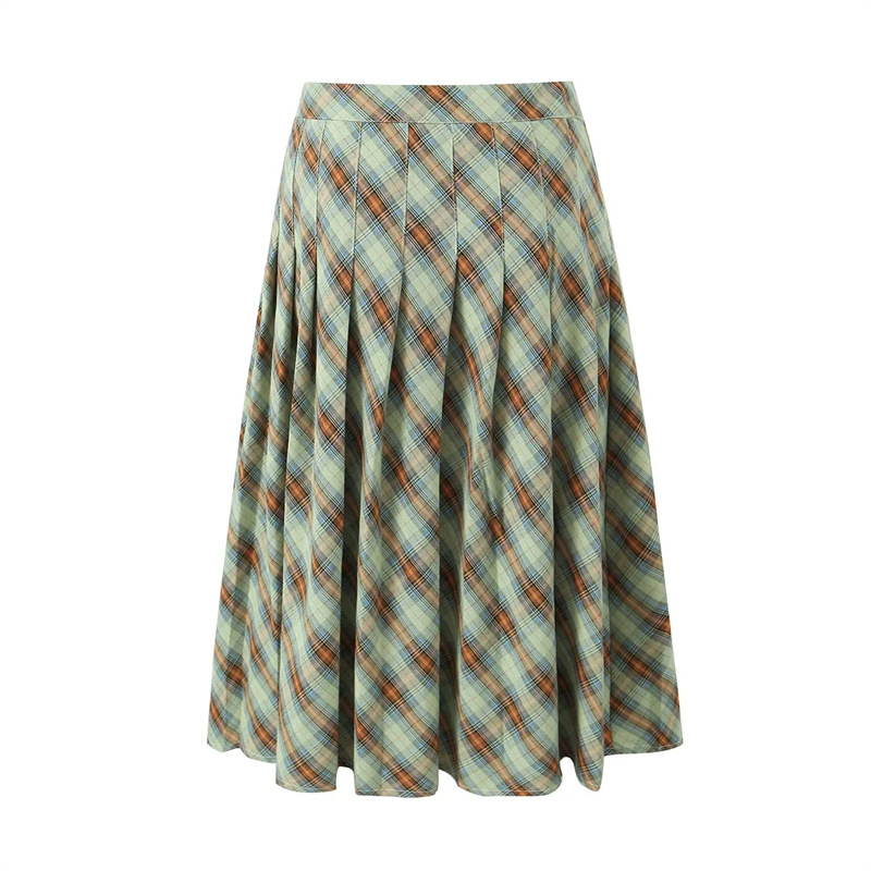 Product information: Pattern: Plaid Color: brown and white plaid, orange and green plaid Size: S,M,L Style type: Art retro Skirt length: long skirt Style: retro style