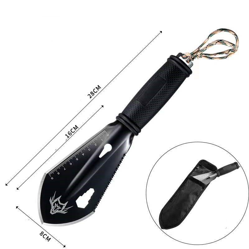 Specification: outdoor productsColor: blackStyle outdoor multi-function shovelSize: 28cm longWeight: 221g