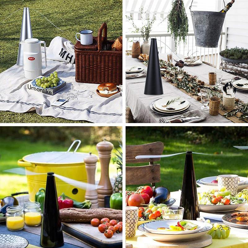 The dots refract/bend light which scares the insects. In their little fly minds, the bending colored lights are not normal in nature and it appears dangerous to them. They will choose to go somewhere else.