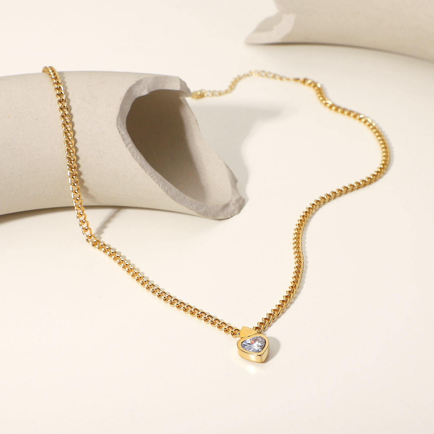 Type: necklaceStyle: Women'sShape: heart shapeMaterial: Stainless steelTreatment process: electroplatingWhether to bring a pendant: yesExtension chain: less than 10cmPendant material: rhinestones