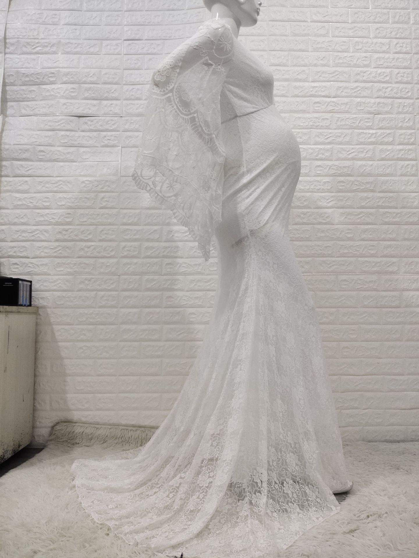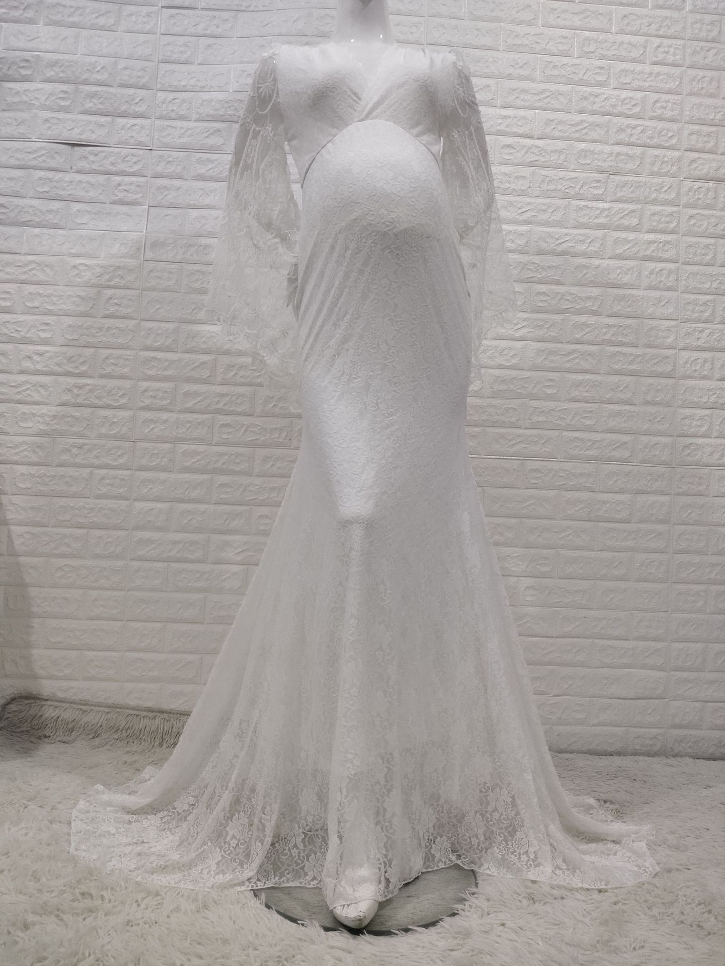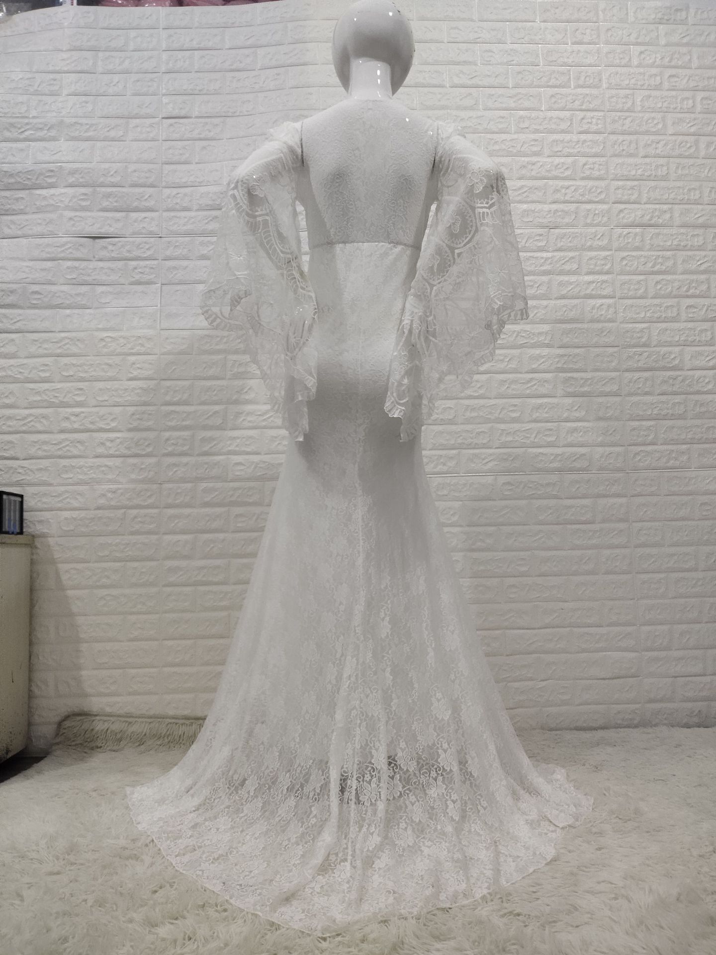 Product information: Fabric name: lace Color: White Sleeve type: bell sleeve Main fabric composition: acrylic fiber Size: S,M,L,XL Skirt length: long skirt Sleeve length: long sleeve