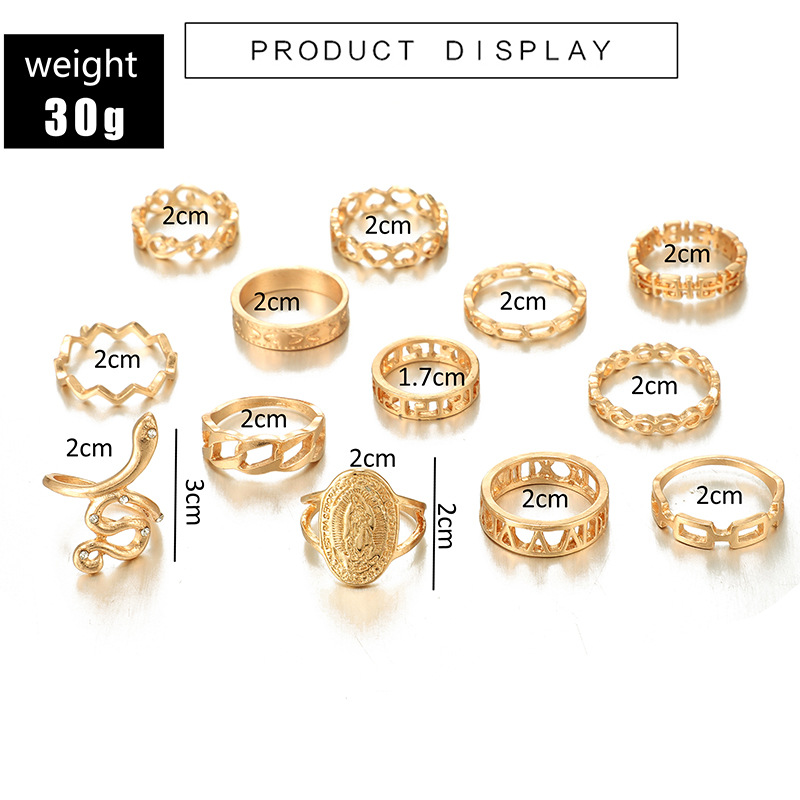 13-piece engraved snake ring with diamonds