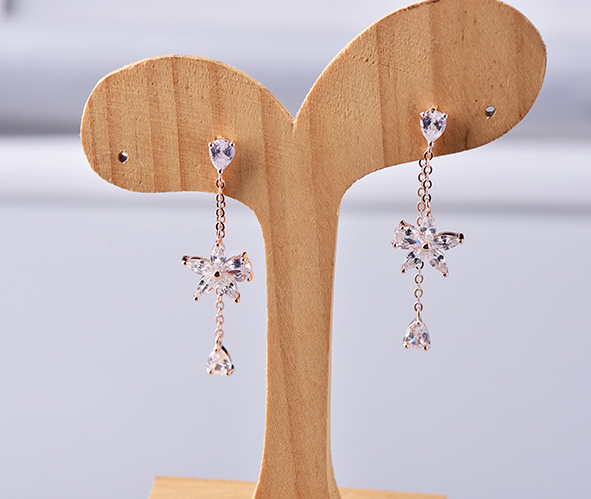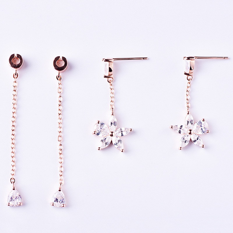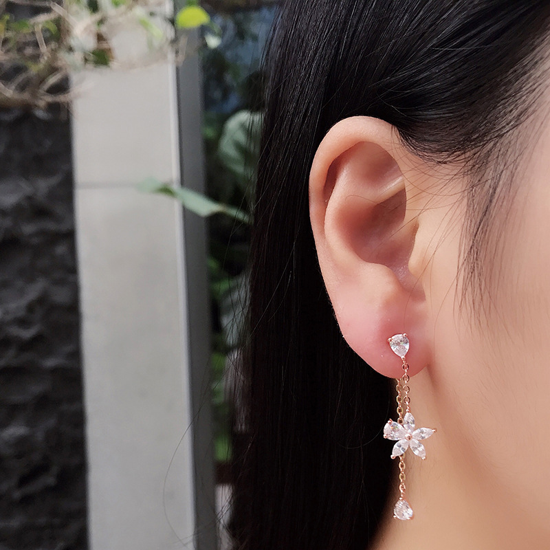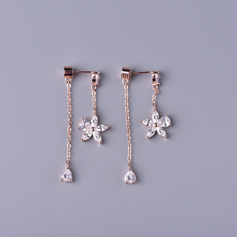S925 sterling silver flower tassel earrings