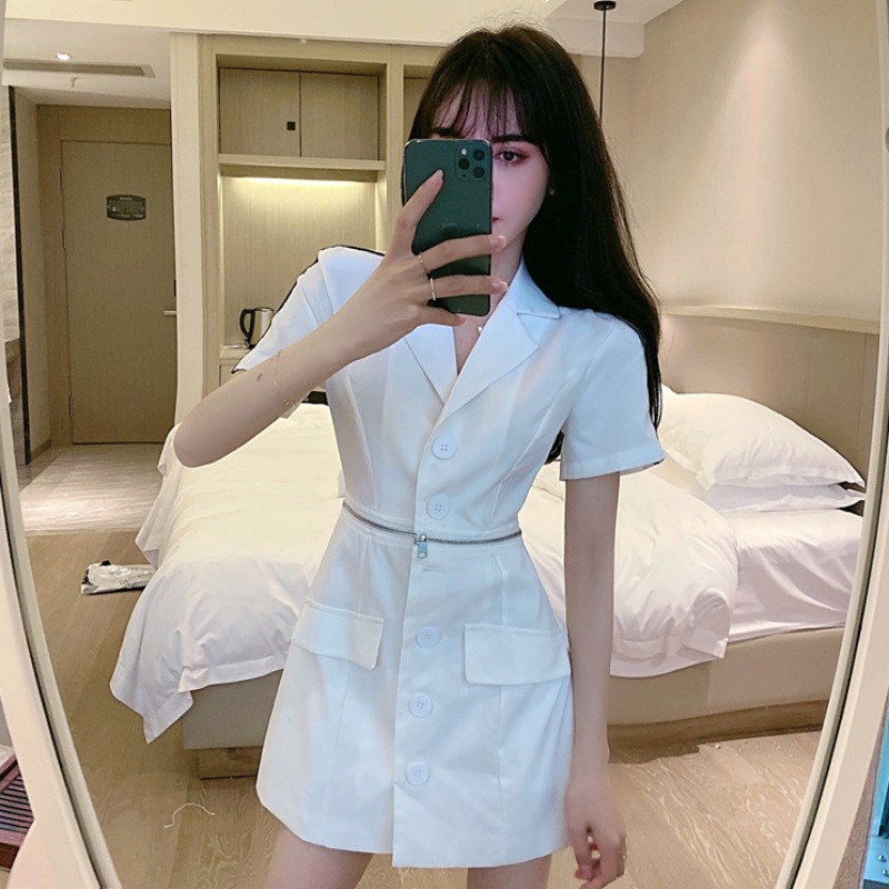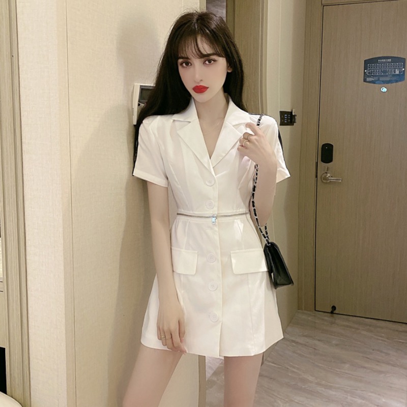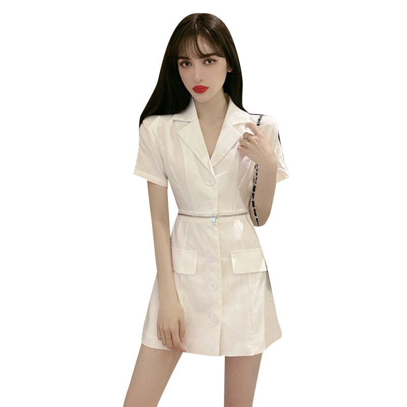 Single-Breasted Color Classification: White Black Sleeve Type: Regular Skirt