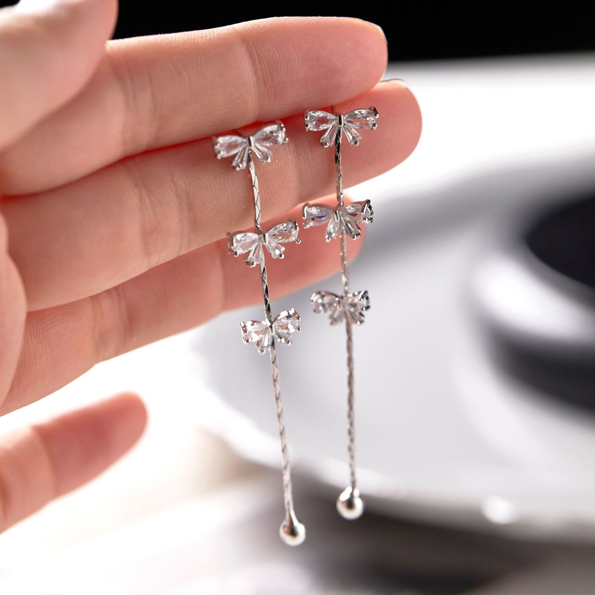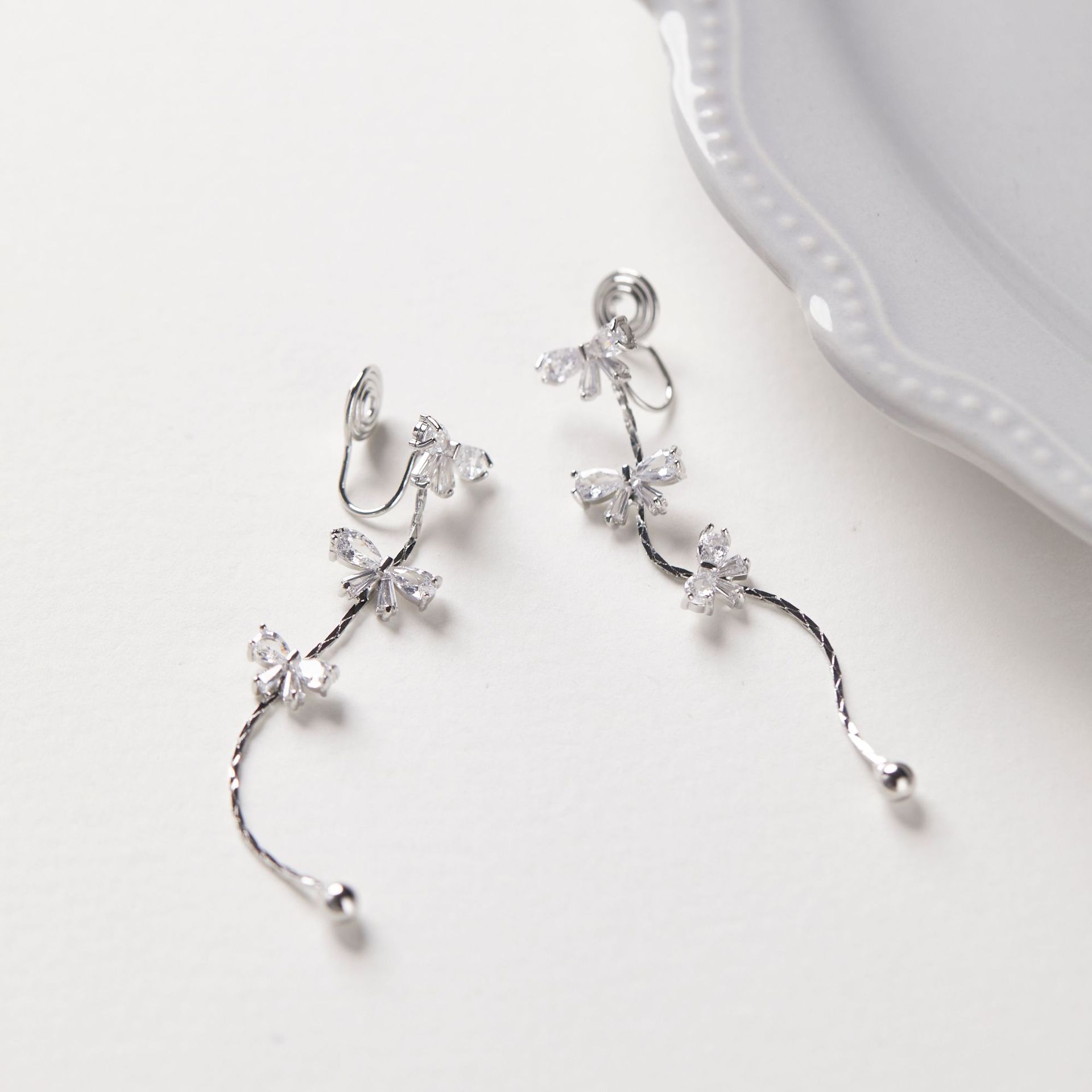 Product information:Treatment Process: Electroplating Color: A pair of ear studs, a pair of ear clips Applicable population: Female Material: Copper Shape: Bow