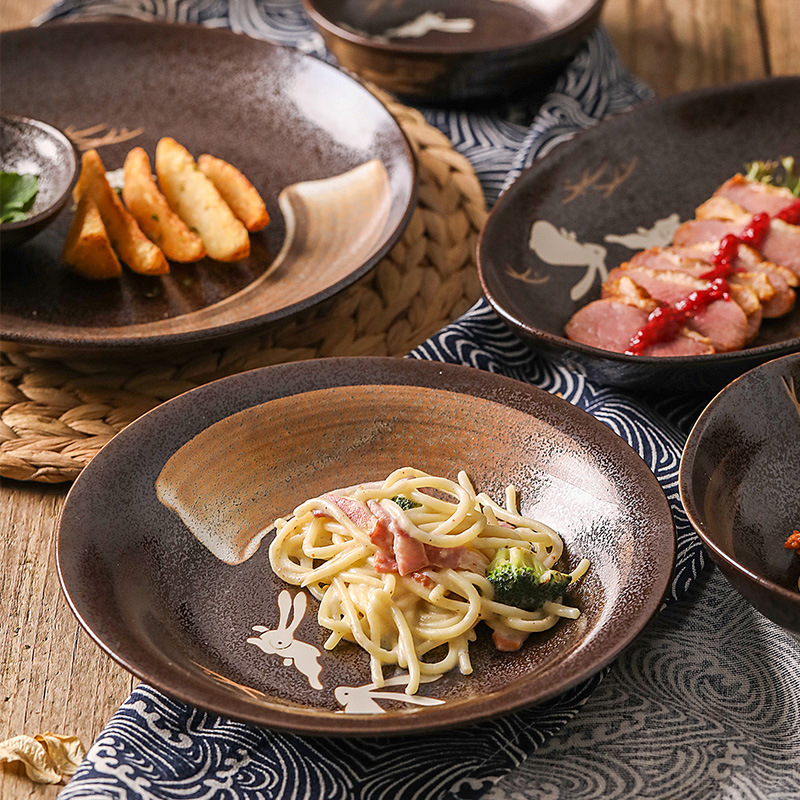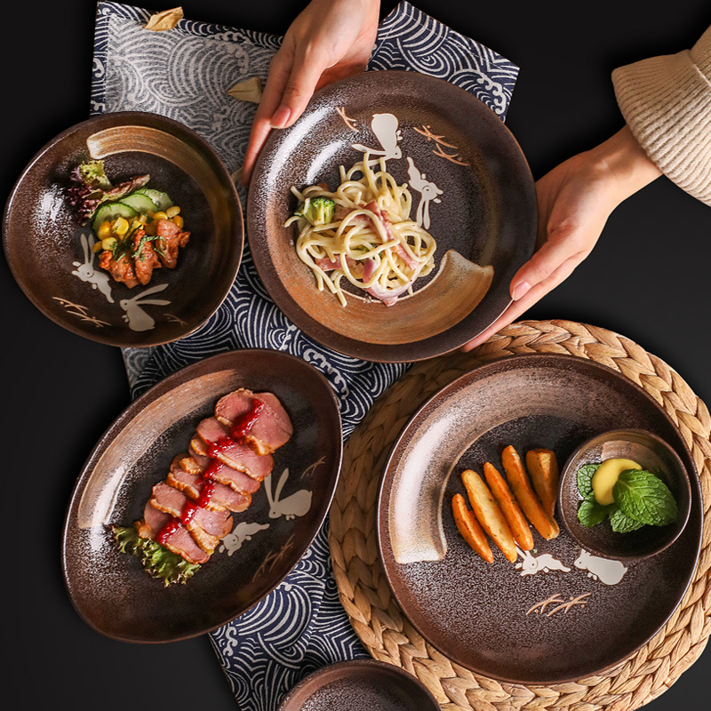 Color: Moon Rabbit 13cm Small Bowl, Moon Rabbit 24cm Oval Fish Plate, Moon Rabbit 21cm Deep Plate