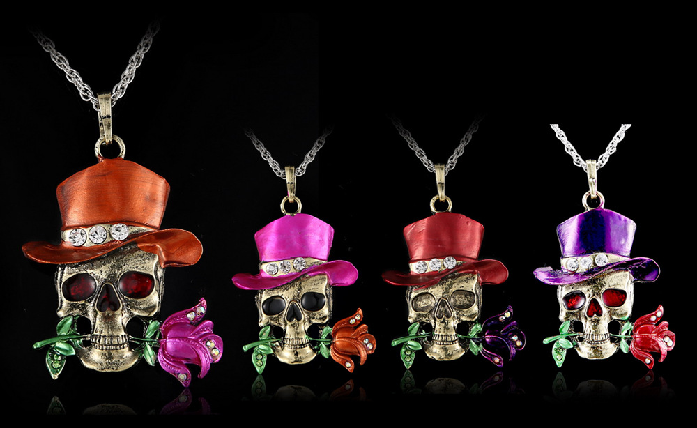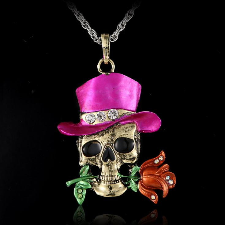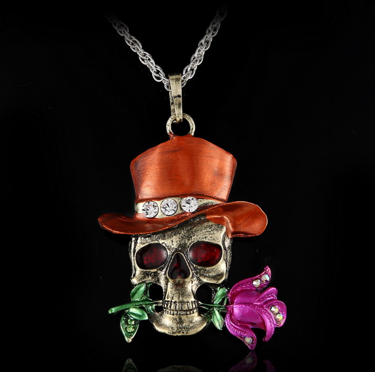 Vintage diamond-studded skull necklace