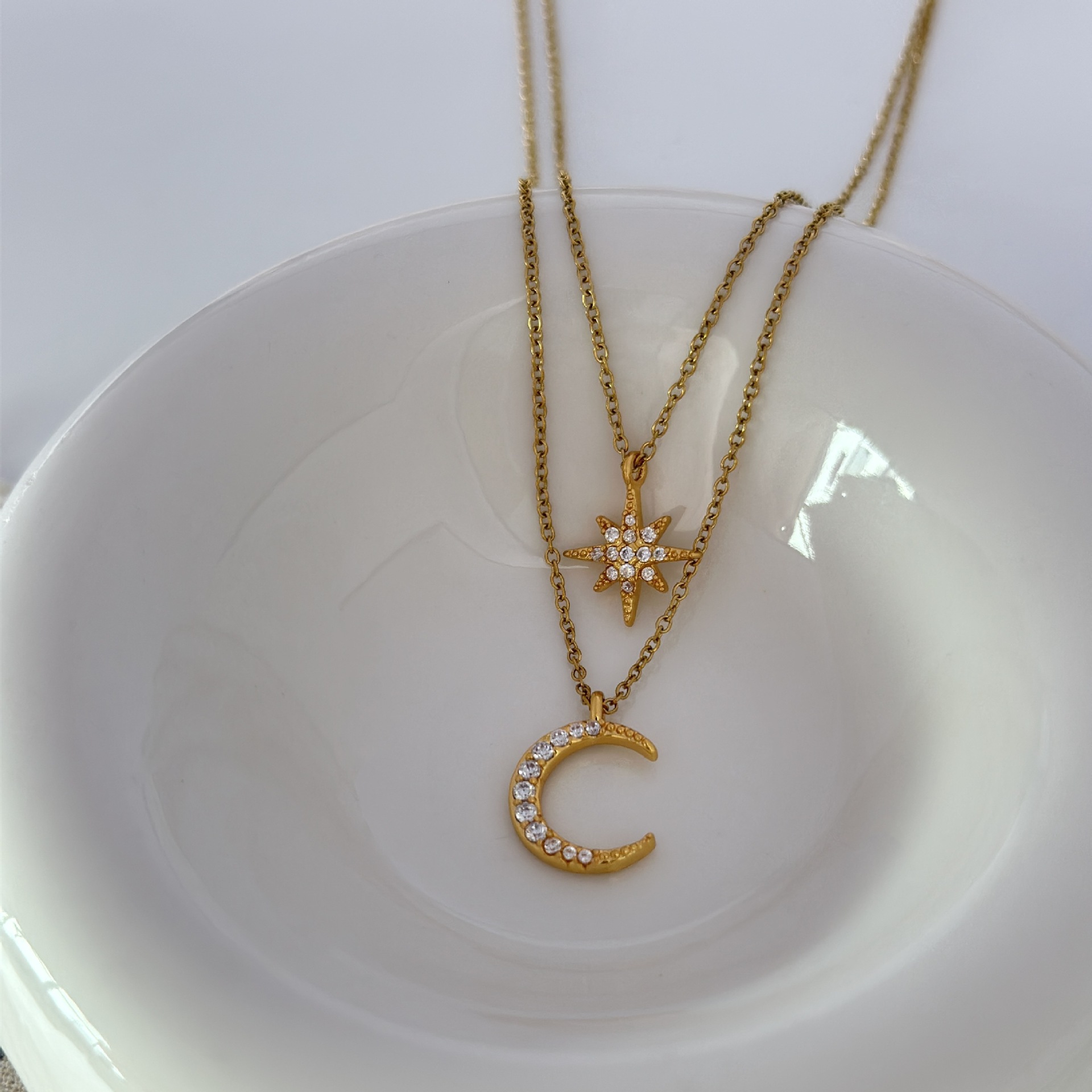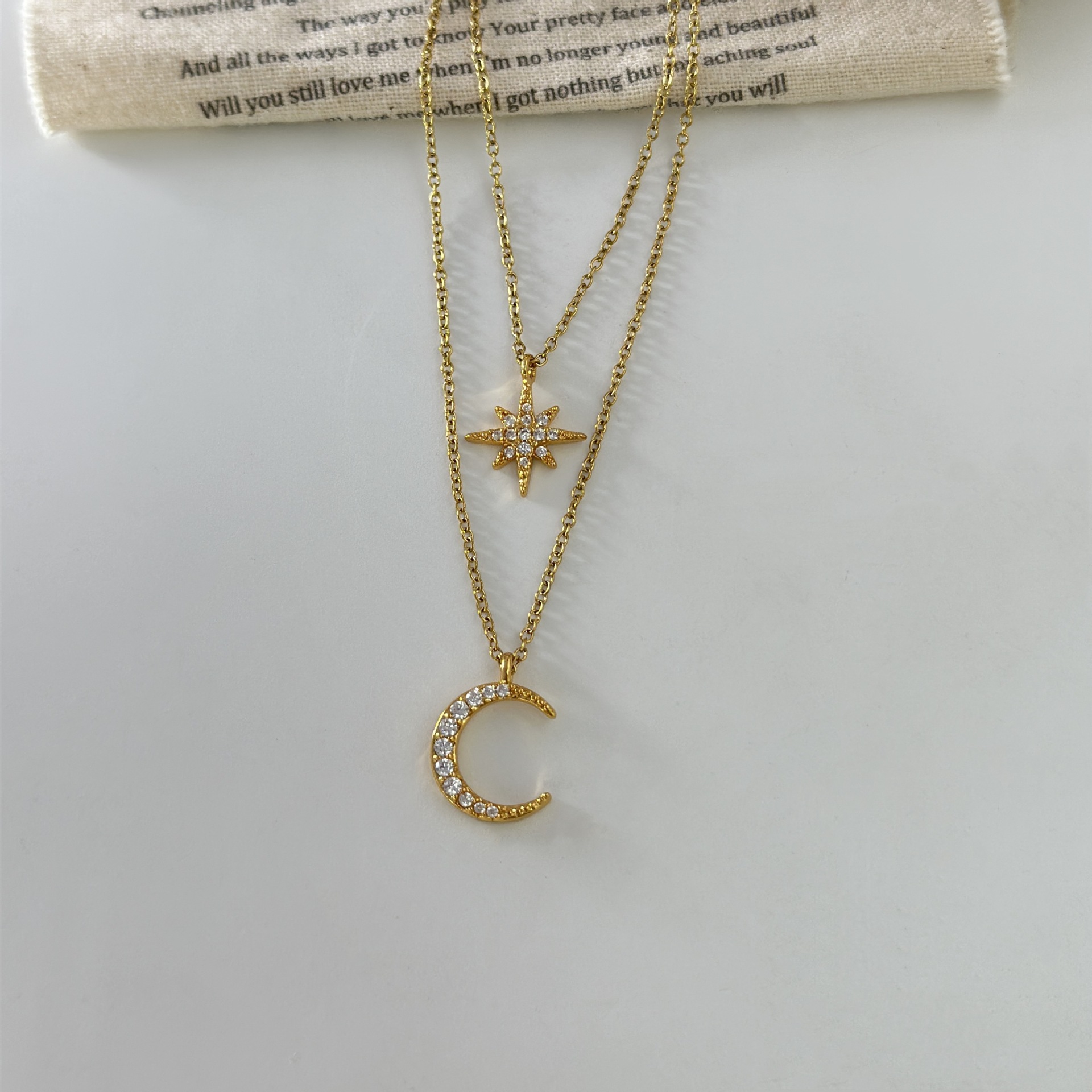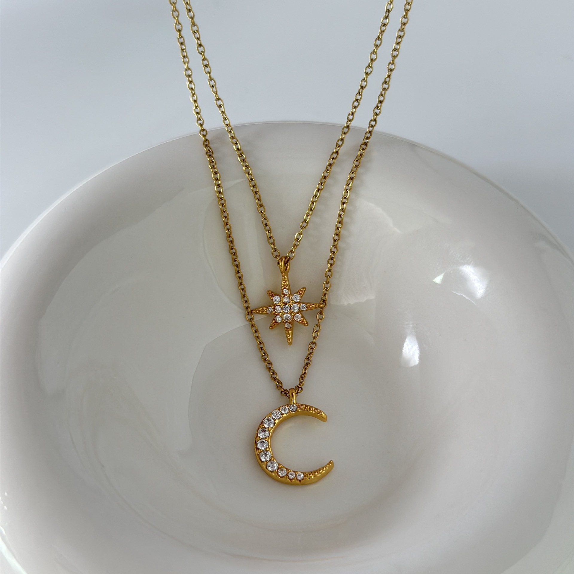 Product information:Color: Star Moon double chainApplicable people: womenPendant material: AlloyChain style: bamboo necklaceMaterial: CopperShape: StarPopular elements: Moon, meteor showerStyle: Korean style