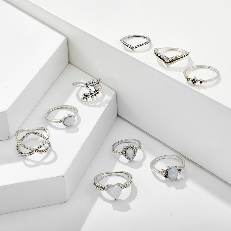 Geometric Opal Leaf Ring