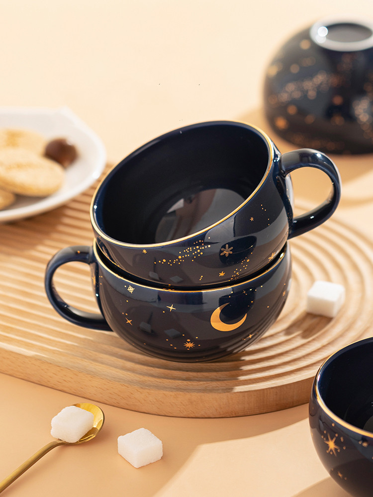 Material: CeramicCapacity: 401mL (inclusive)-500mL (inclusive)Style: JapaneseColor classification: moon ball breakfast cup, starry sky breakfast cup
