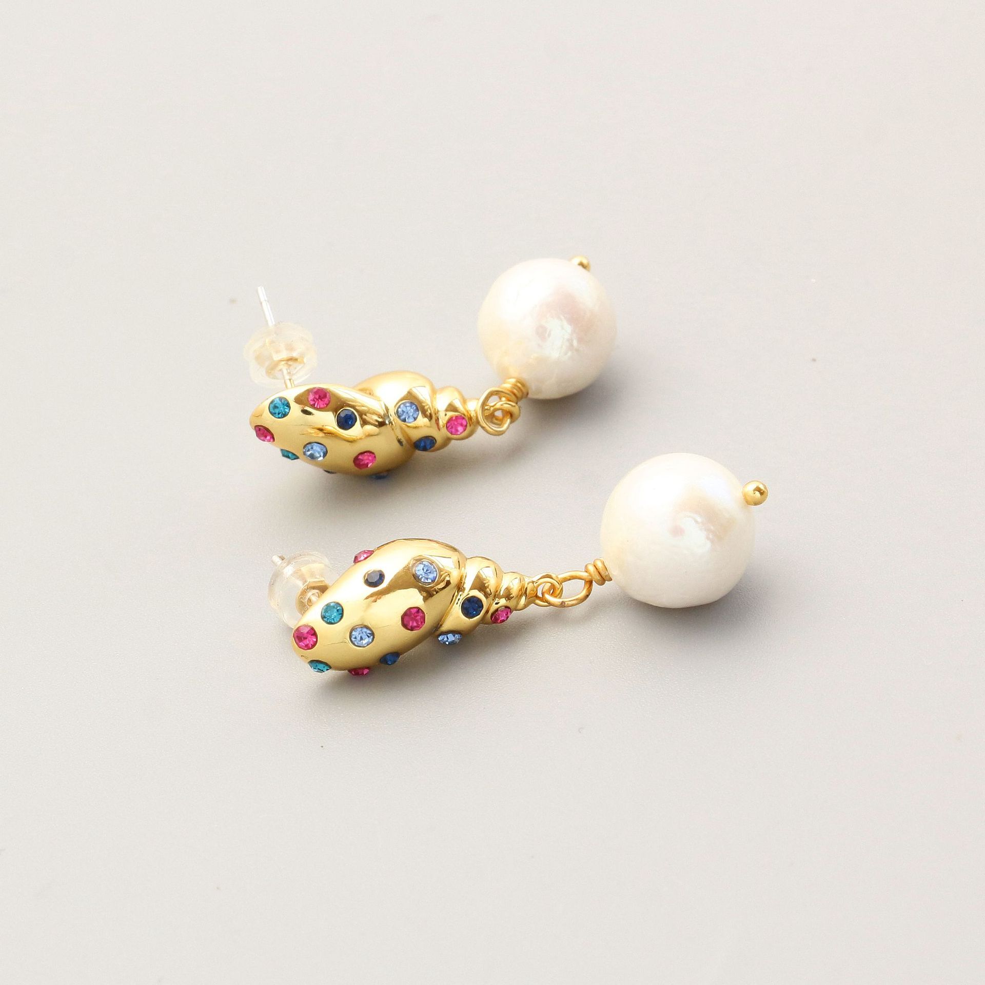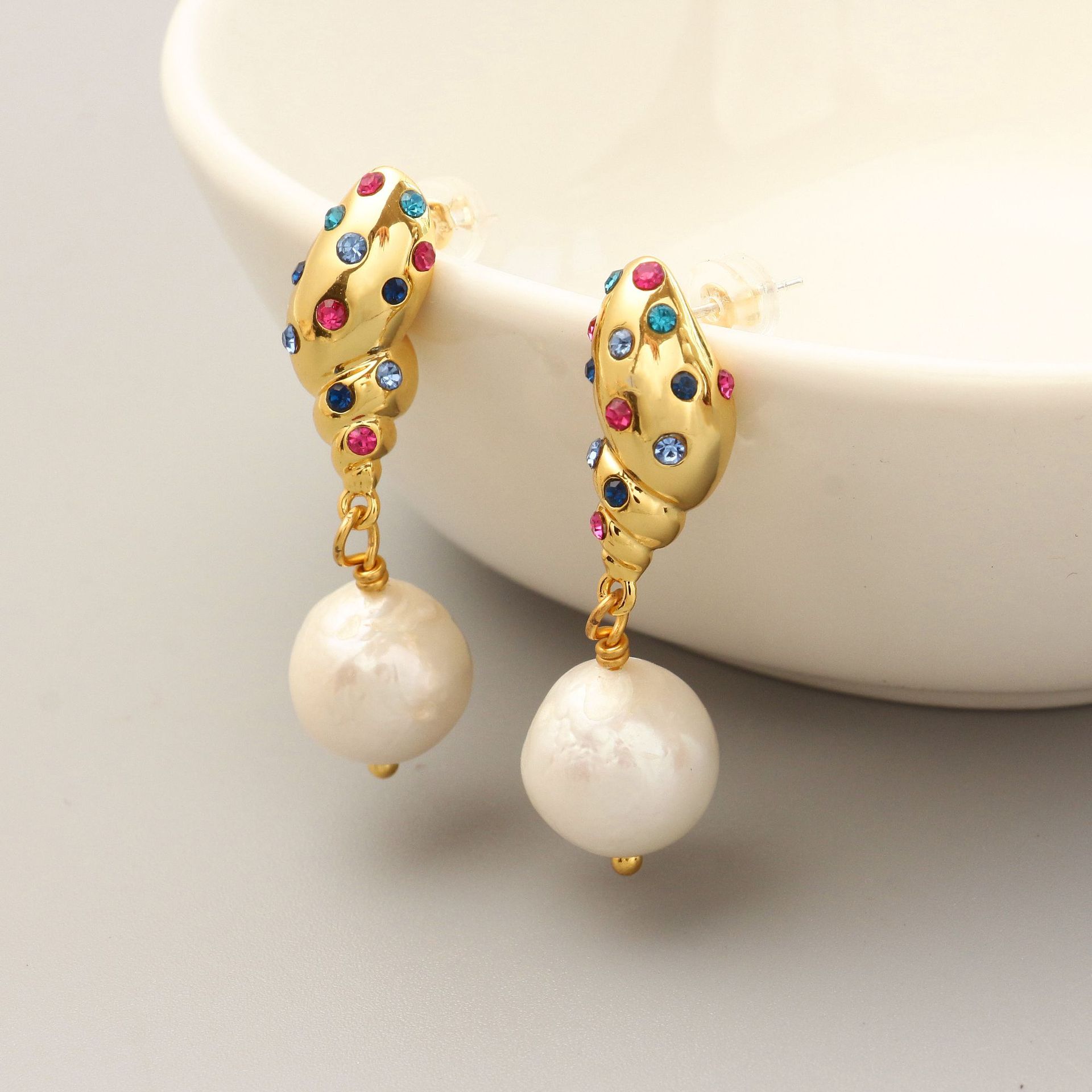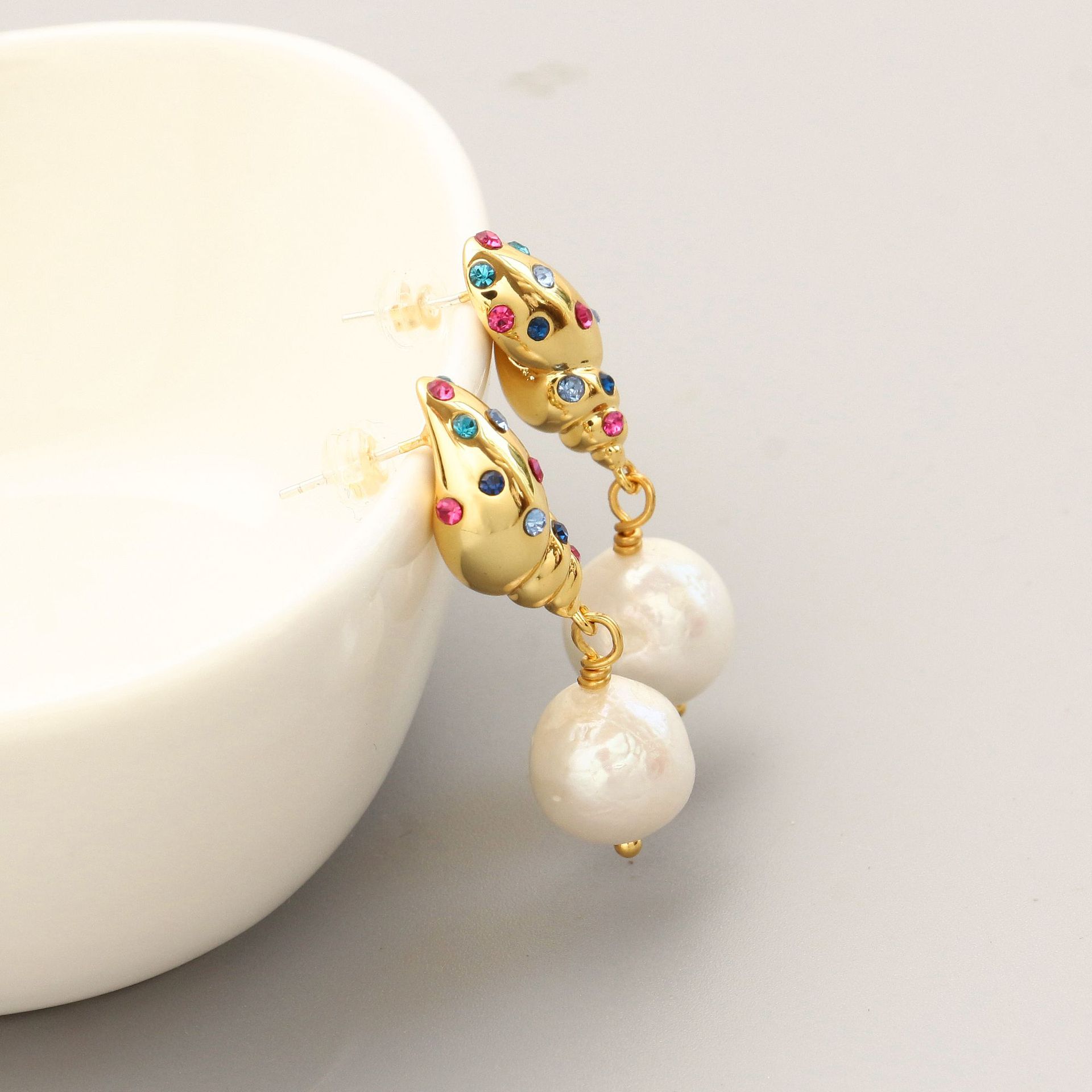 Women's Silver Needle Premium Pearl Sparkling Diamond Earrings