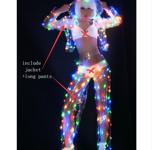 Nightclub Bar Transparent LED Colorful Transparent Caps Clothing Party Lighting Costumes DJ Dance Team Stage Pack