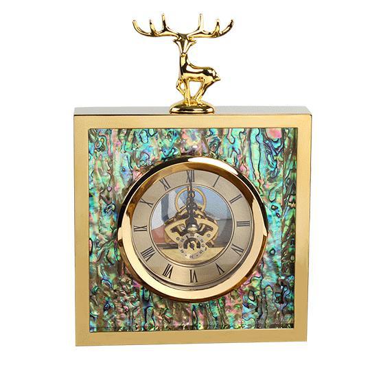 Creative square stainless steel metal golden deer head abalone shell clock clock pendulum model room decoration 16*16*24.5 thickness 4cm