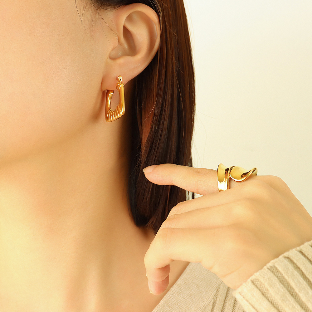 Product information:Treatment Process: Electroplating Color: steel,gold Style: Women's Material: titanium steel Shape: U-shaped Popular elements: metal, geometry, retro