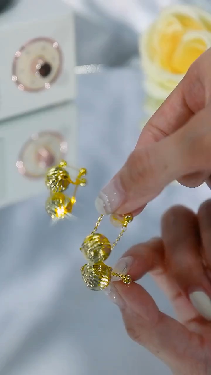 Copper Alloy Earrings Rotating Flower Ball Light Luxury Temperament