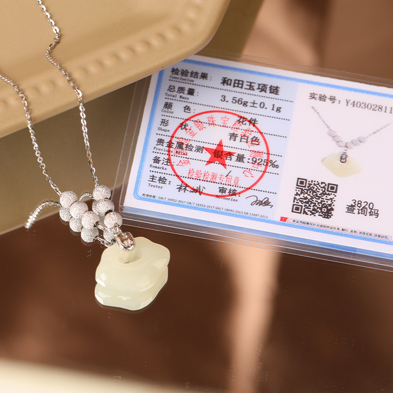 Product information:Color: Hetian jade necklaceMaterial: JadeStyle: necklaceApplicable occasions for gifts: wedding, travel commemoration, employee benefitsStyle: Women'sShape: roundStyle: Natural