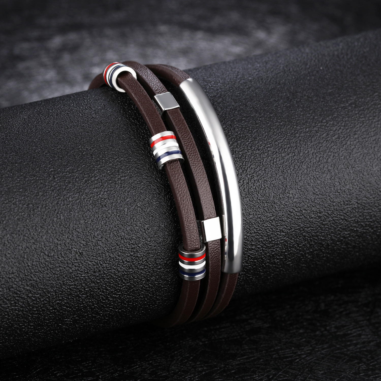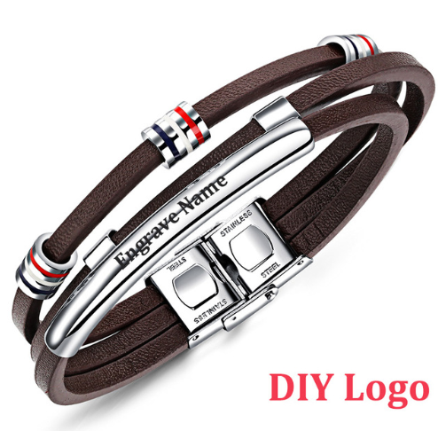 Style Europe and America Material Titanium Steel Treatment process Type Bracelet, Bracelet Style Men's Style Geometry Health Care Features Others Packaging Individual Packaging Applicable Gift Giving Opening Ceremony, Employee Benefits, Anniversary Celebrations, Advertising Promotions, Business Gifts Imprinted LOGO can be customized Color [1219] leather bracelet