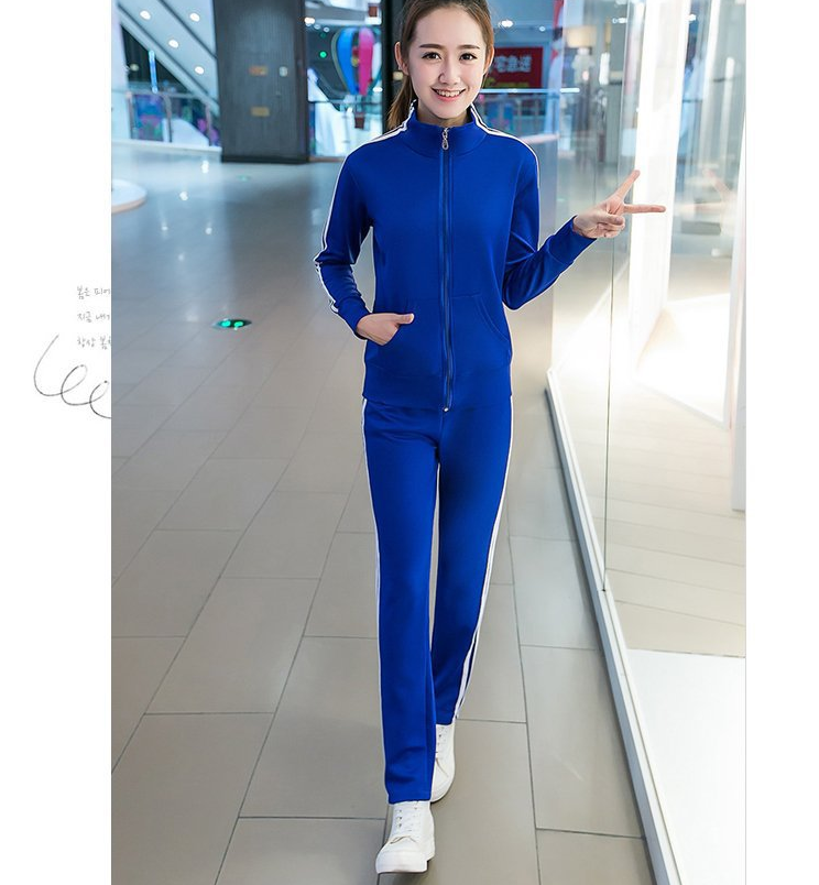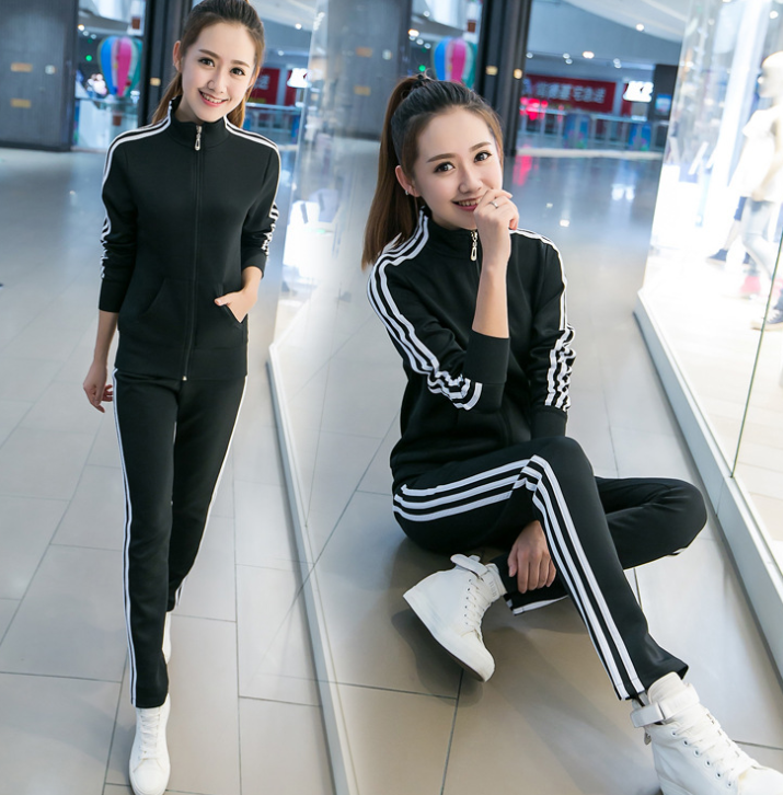 Spring and Autumn New Korean Fashion Running Sportswear Set Female Student Stand Collar Three Bars Two Piece Set Women