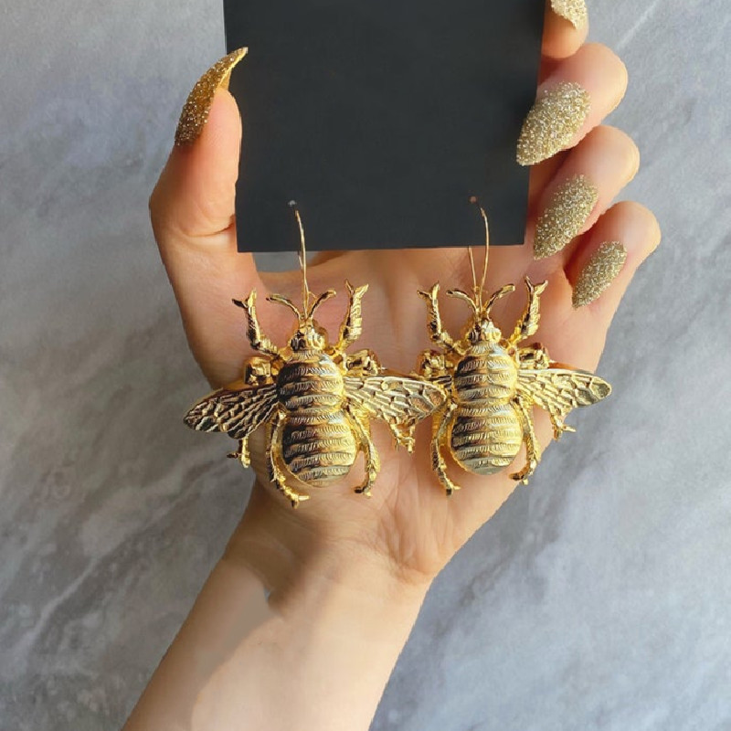 Product information :Material: alloyModeling: insectsMosaic material: Not MosaicColor: silver white K, imitation goldPacking list:A pair of earrings