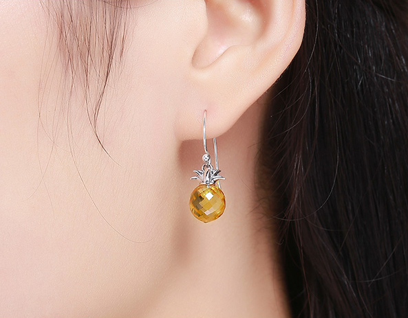 100 925 Sterling Silver Hanging Pineapple Crystal Hanging Drop Earrings For Women Sterling Silver Jewelry Gift SCE265