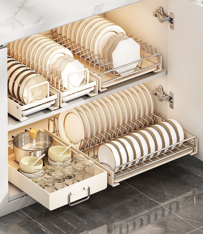 Kitchen Household Bowl Plate Plate Storage Rack Cabinet Built-in Drawer Draining Basket Bowl Rack